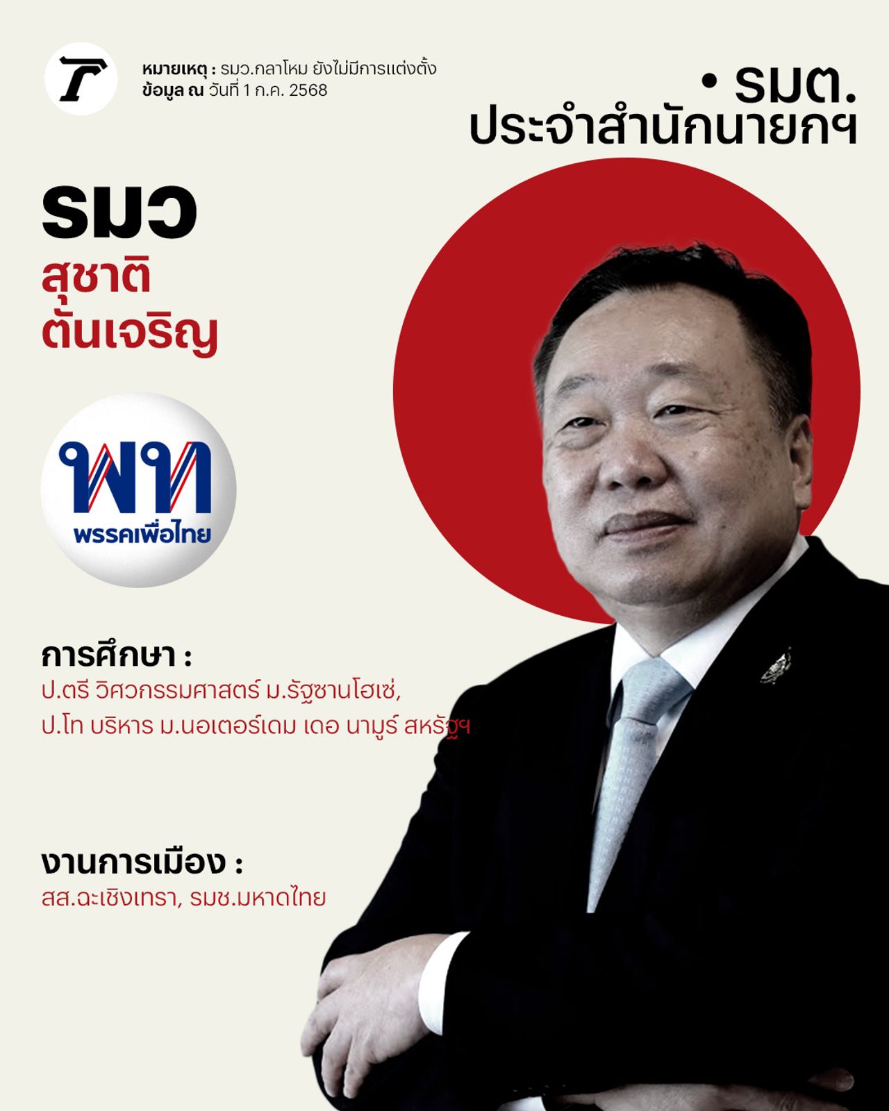 วันที่ 1 ก.ค. 2568 ราชกิจจานุเบกษา เผยแพร่ประกาศแต่งตั้งคณะรัฐมนตรี (ครม.) ชุดใหม่ ในรัฐบาลนางสาวแพทองธาร ชินวัตร โดยมีคนที่ได้รับการโยกย้ายตำแหน่ง และเข้ามาดำรงตำแหน่งใหม่ดังนี้