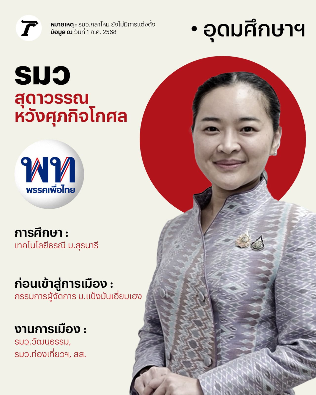 รัฐมนตรีว่าการ: นางสาวแพทองธาร ชินวัตร (เพื่อไทย)