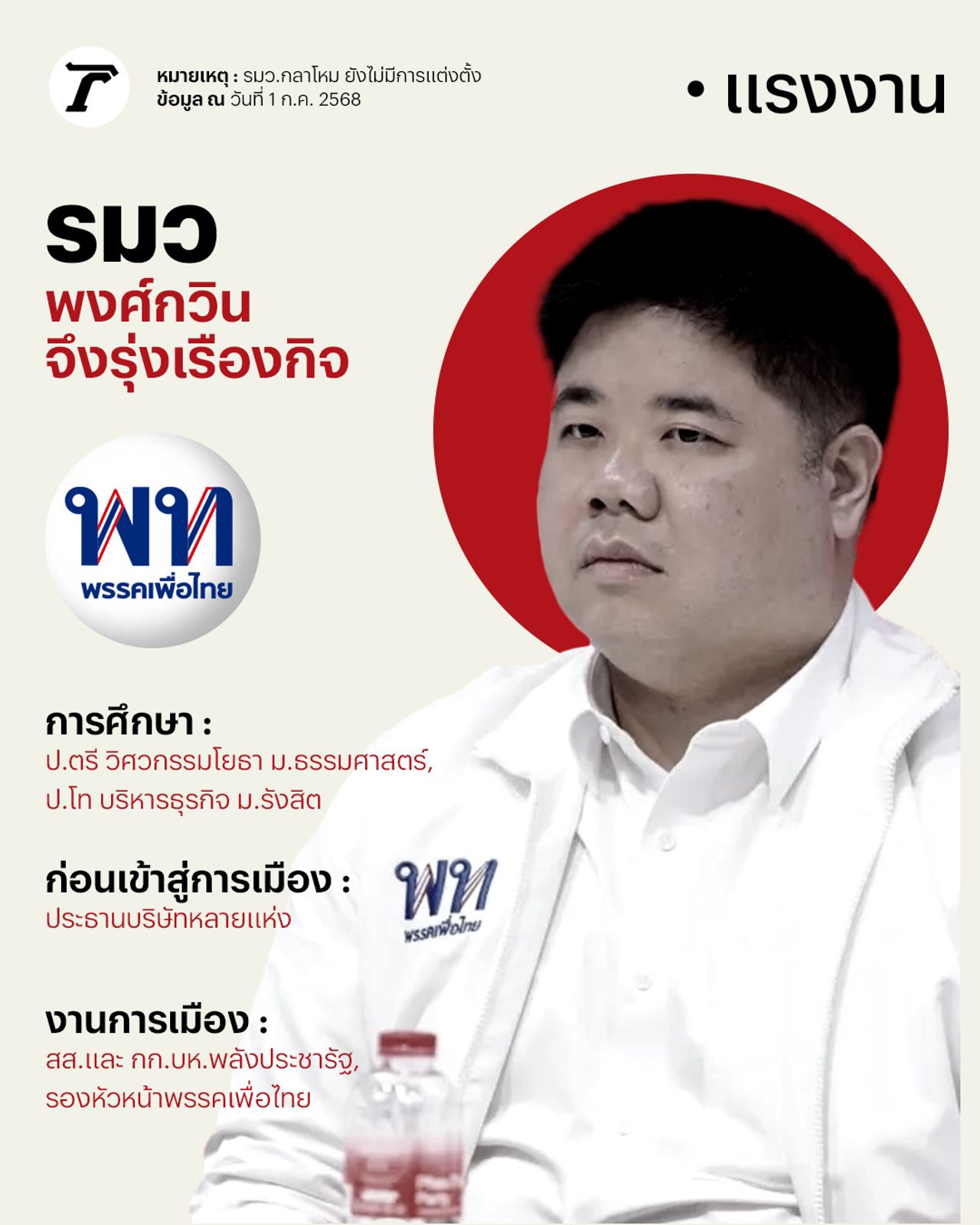 รัฐมนตรีว่าการ: พงศ์กวิน จึงรุ่งเรืองกิจ (เพื่อไทย) หลานชายนายสุริยะ จึงรุ่งเรืองกิจ