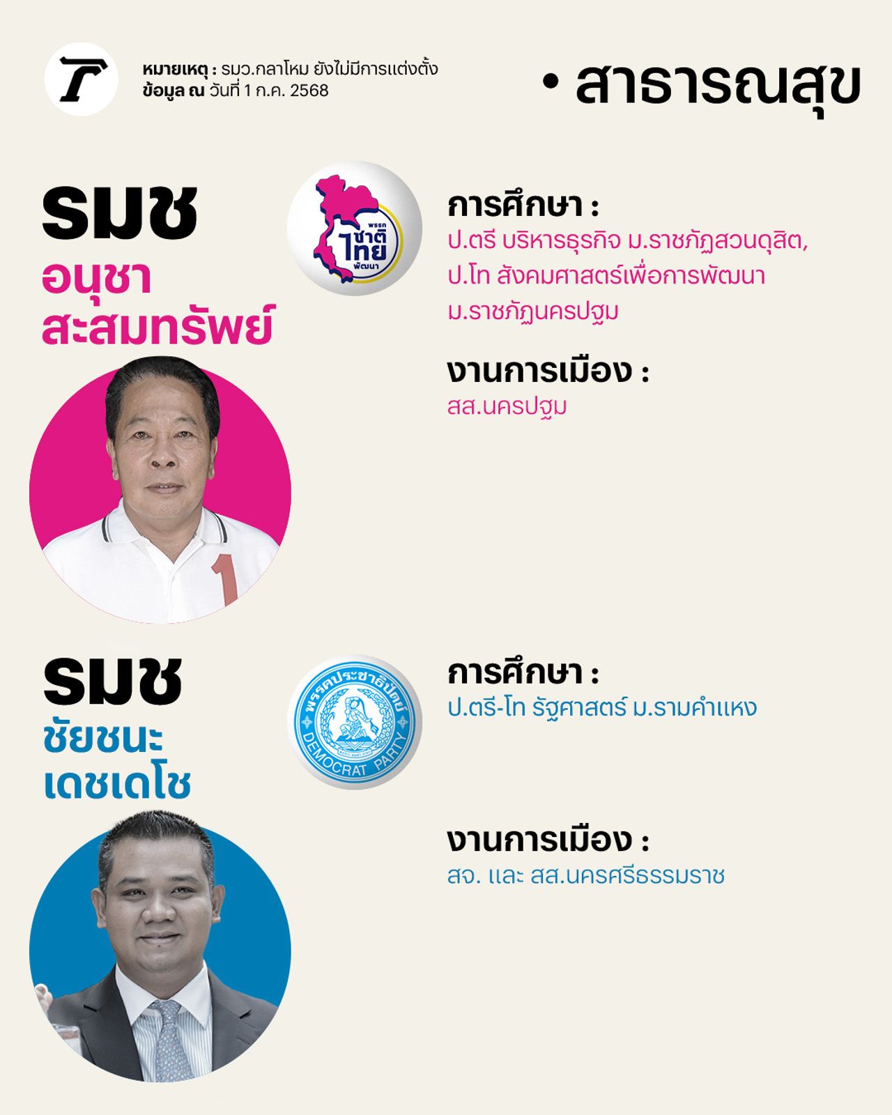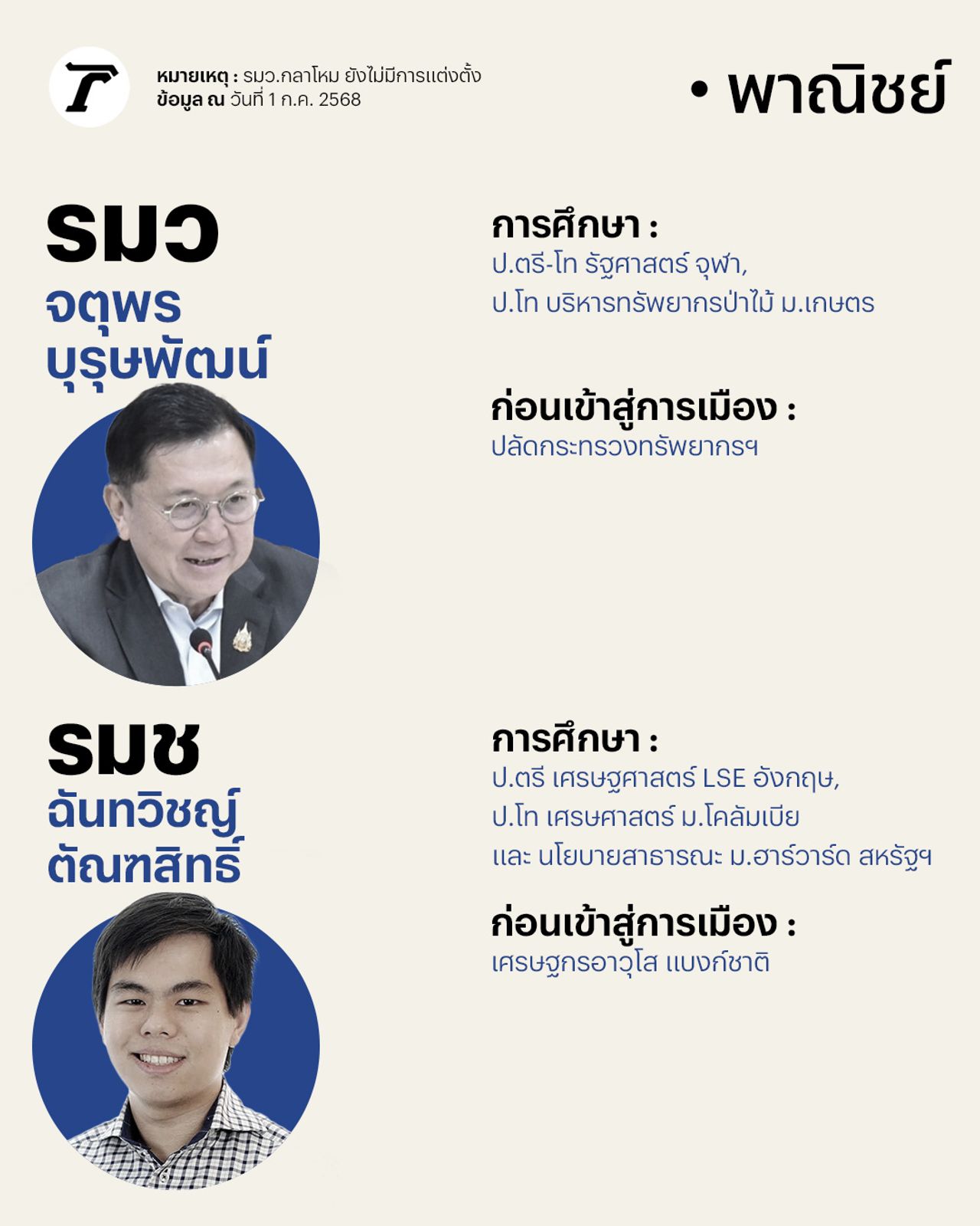 รัฐมนตรีช่วยว่าการ: ฉันทวิชญ์ ตัณฑสิทธิ์ (คนนอก) ลูกชายของนายฐากร ตัณฑสิทธิ์ สส.บัญชีรายชื่อ พรรคไทยสร้างไทย ปัจจุบันร่วมงานกับพรรคกล้าธรรม