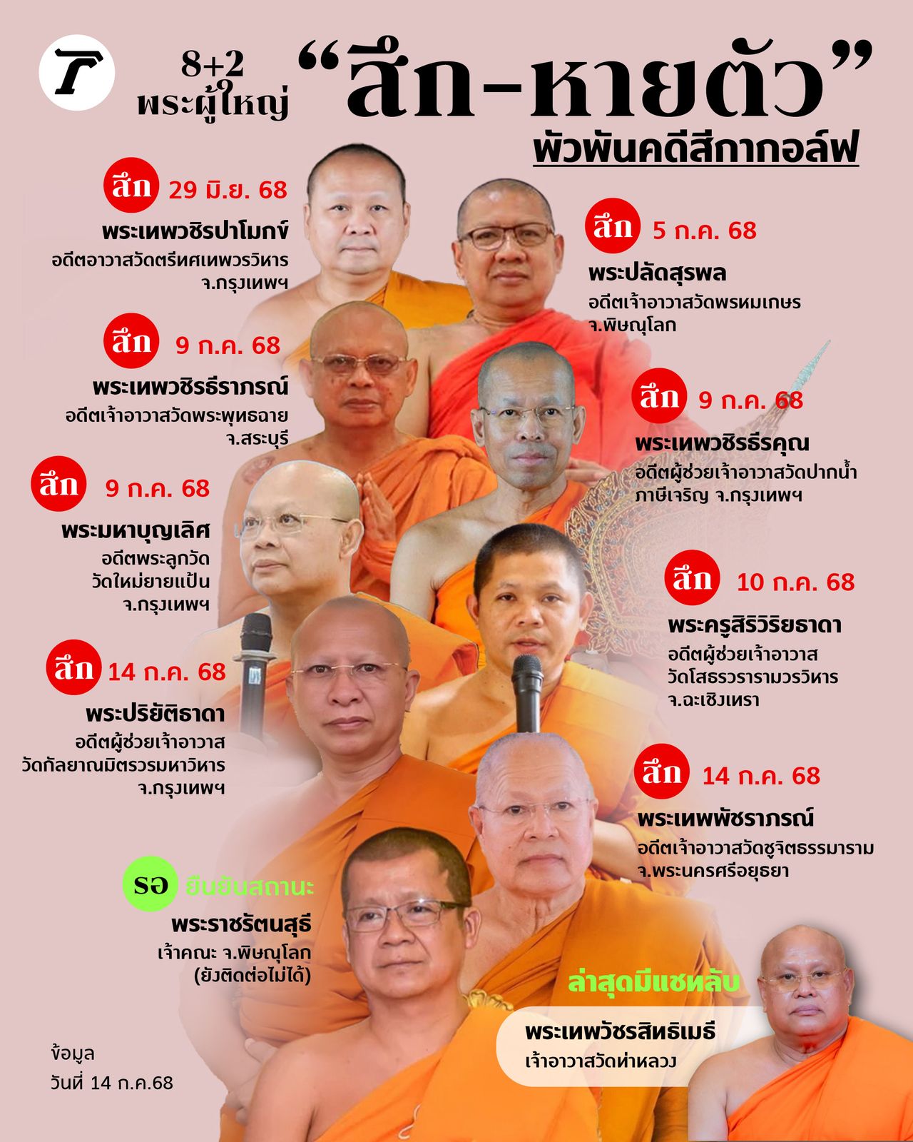 ล่าสุดวันนี้ 14 ก.ค. 68 มีพระผู้ใหญ่สึกจากกรณี สีกากอล์ฟ ดังนี้
