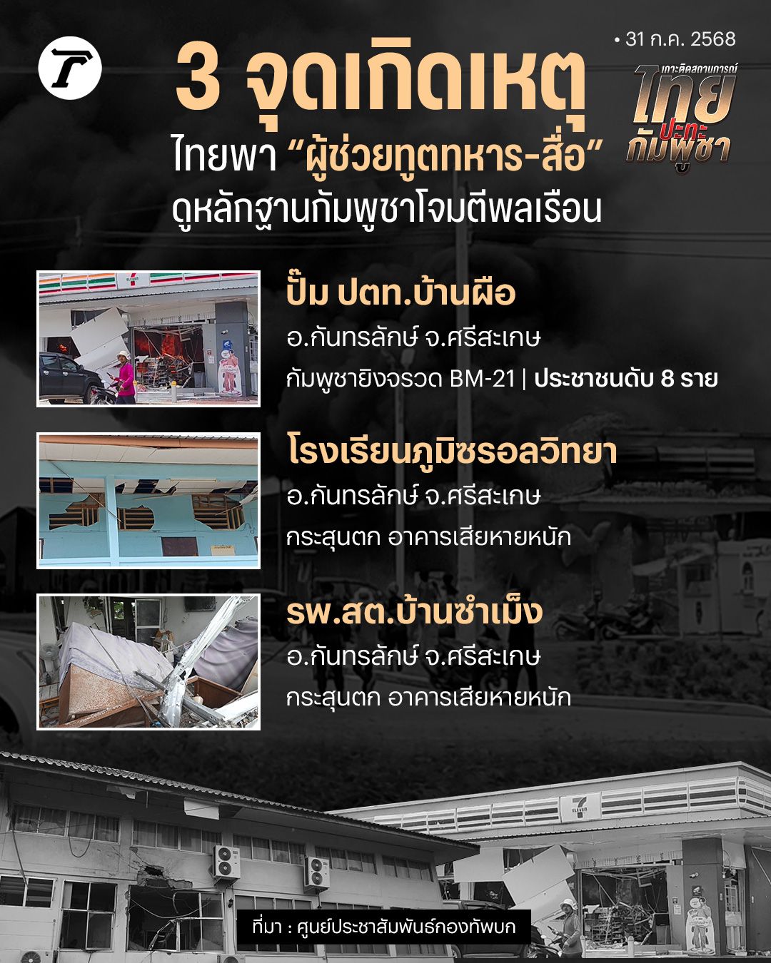 ไทยเตรียมพา “ผู้ช่วยทูตทหาร-สื่อ” ดูความเสียหาย "ปั๊ม โรงเรียน โรงพยาบาล" หลักฐาน กัมพูชาโจมตีพื้นที่พลเรือน