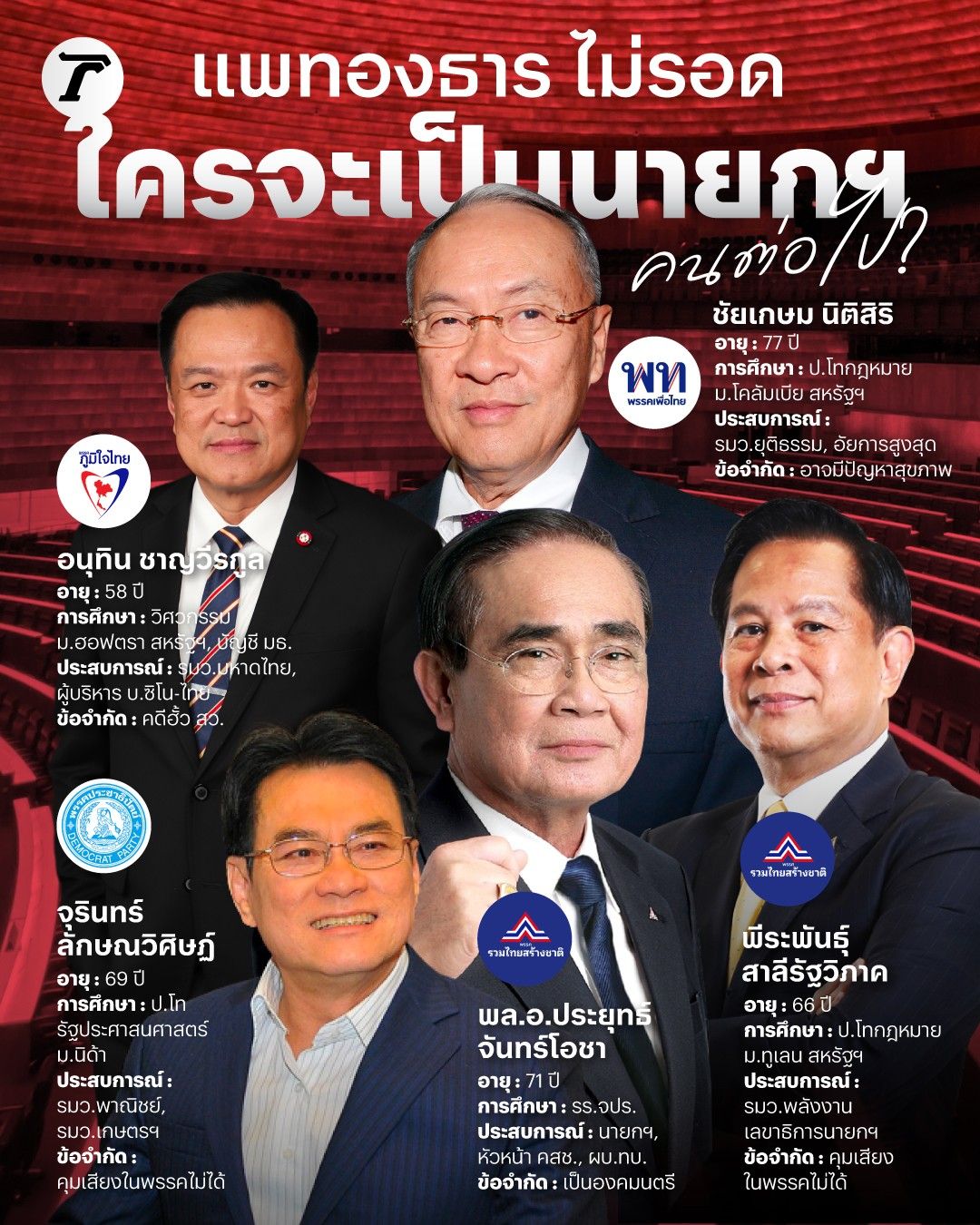 เปิดรายชื่อ 5 แคนดิเดตนายกฯ คนใหม่ หลัง "แพทองธาร ชินวัตร" ไม่ได้ไปต่อ ถูกศาลรัฐธรรมนูญฟันพ้นตำแหน่ง ปมคลิปเสียงฮุนเซน
