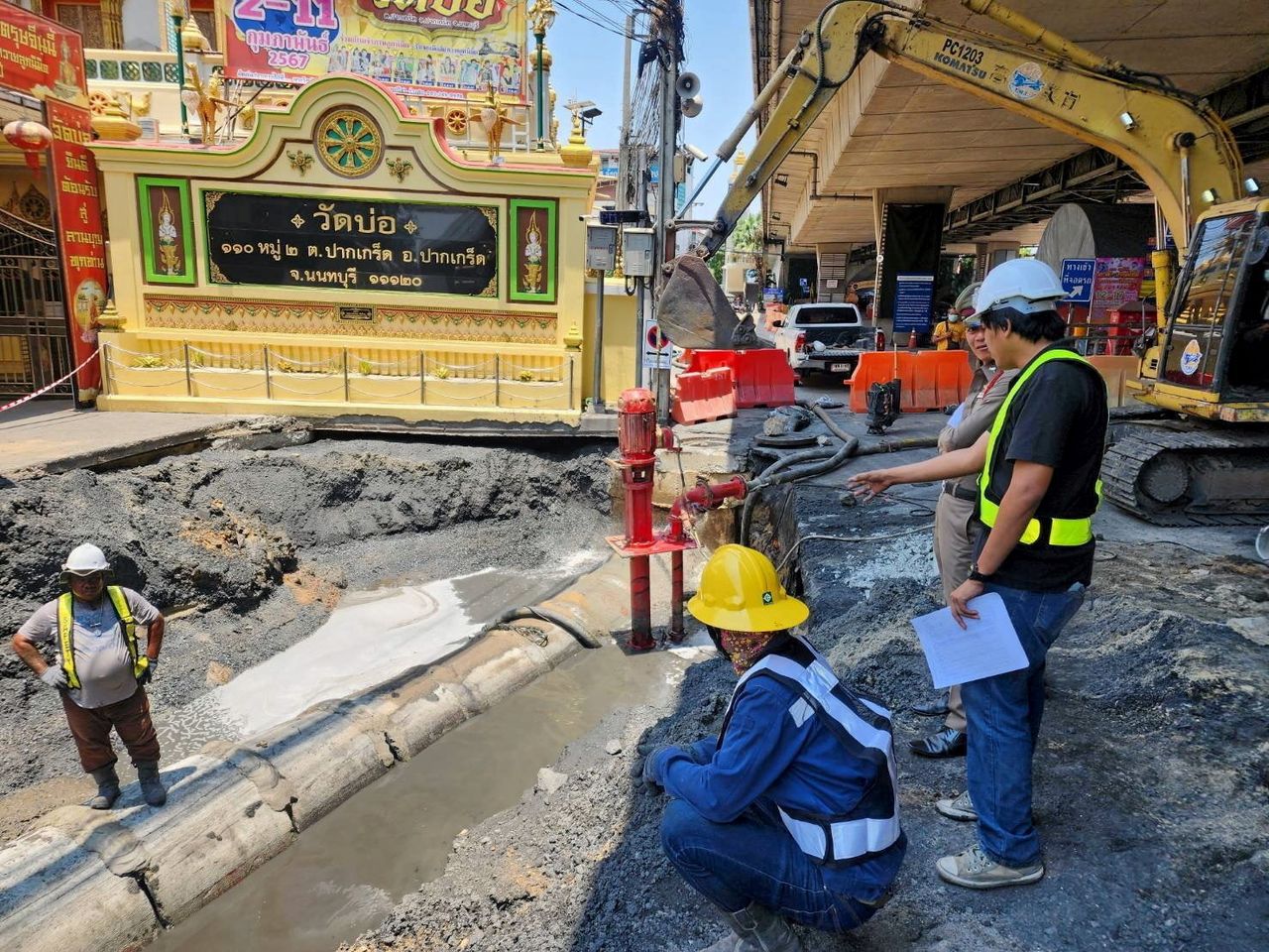 เหตุเกิดช่วงจุดกลับรถใต้สะพานพระราม 4 หน้าทางเข้าวัดบ่อ ย่านปากเกร็ด จ.นนทบุรี เกิดเป็นหลุมกว้างราว 4 เมตร ยาว 10 เมตร ลึก 2 เมตร ขณะเกิดเหตุมีพ่อลูกจอด จยย.อยู่ในพื้นที่ หวิดตกหลุมบาดเจ็บ การไฟฟ้านครหลวง แจงเป็นพื้นที่ของโครงการก่อสร้างบ่อพัก และท่อร้อยสายไฟฟ้าใต้ดิน เนื่องจากข้อจำกัดของพื้นที่ที่จำเป็นต้องทำงานในชั้นทรายใกล้แม่น้ำ จึงเกิดการเคลื่อนตัวของชั้นทรายมากกว่าปกติ