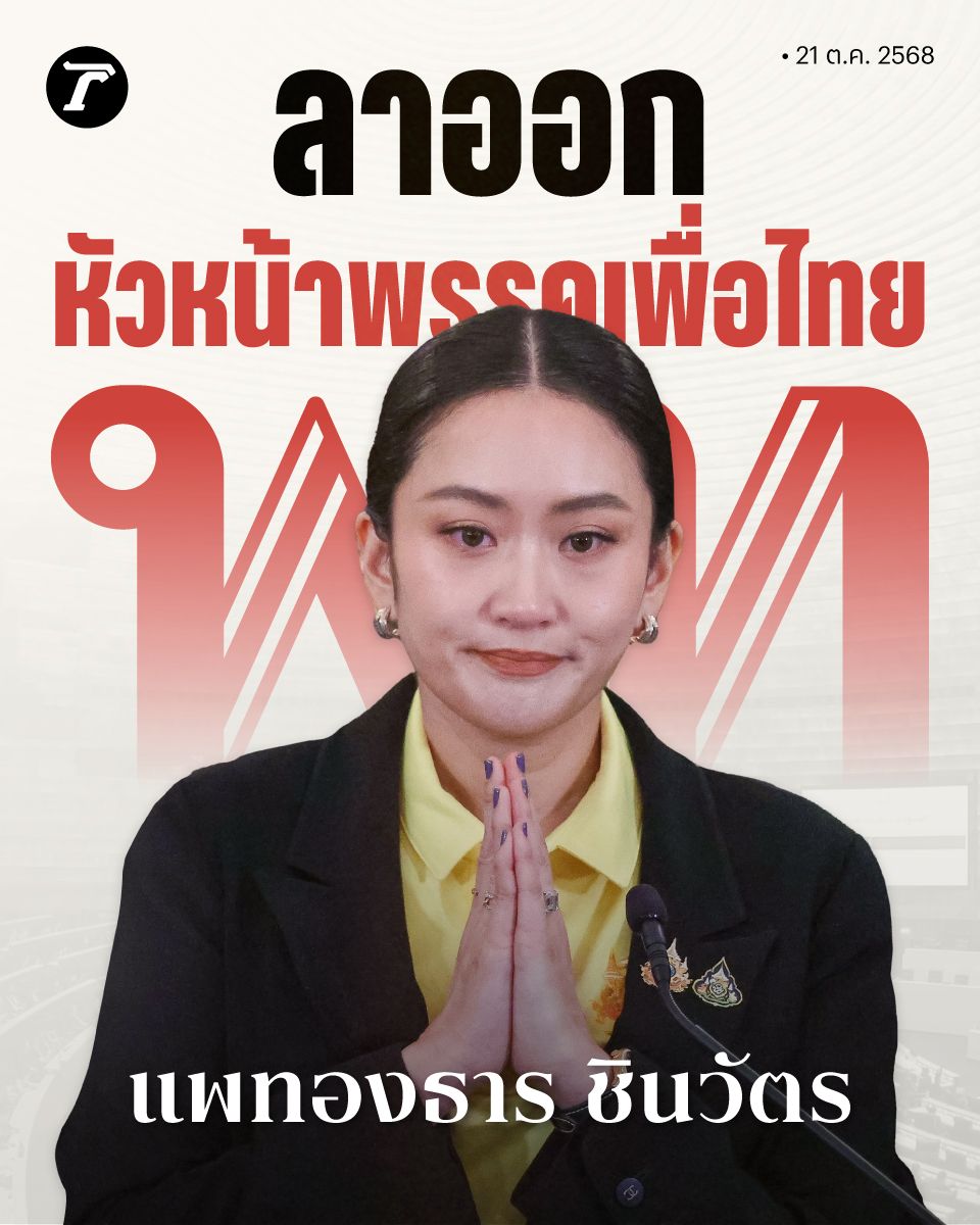 ภายหลังคำวินิจฉัยของศาลรัฐธรรมนูญ ในวันที่ 21 ตุลาคม 2568 มีรายงานว่า น.ส.แพทองธาร ได้ประกาศ ลาออกจากตำแหน่งหัวหน้าพรรคเพื่อไทย คาดว่า มีความกังวลเรื่องการลงนามรับรองผู้สมัคร สส. ในการเลือกตั้งใหญ่ปี 2569 อาจถูกร้องเรียนได้ในภายหลัง โดยจะแจ้งลาออกอย่างเป็นทางการในวันที่ 22 ตุลาคม ในที่ประชุมของพรรค