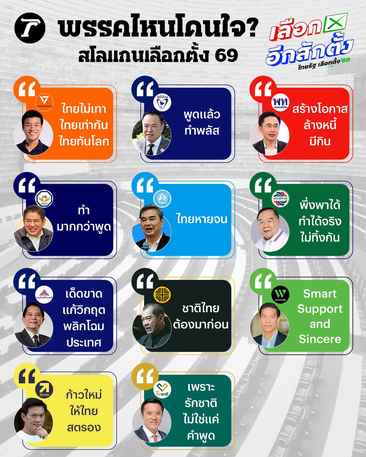 พรรคไหนโดนใจที่สุด? เปิด "สโลแกน-แคมเปญ" แต่ละพรรคการเมือง ใช้สู้ศึกเลือกตั้ง 2569