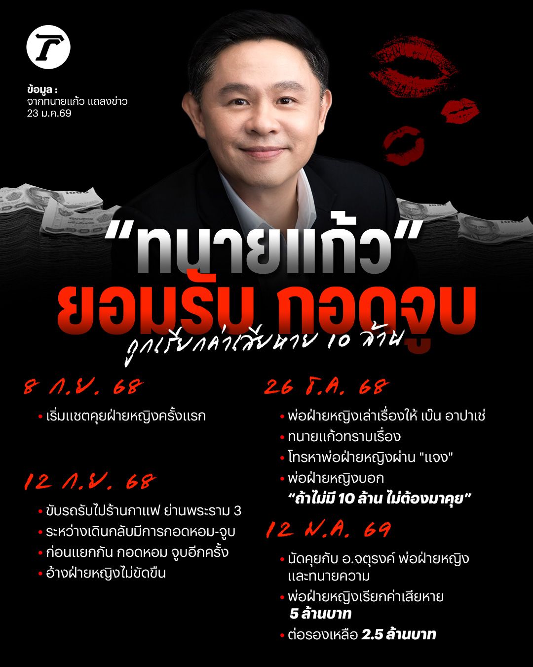 “ทนายแก้ว” ยอมรับกอดจูบสาว 18 ปี ก่อนถูกเรียกค่าเสียหาย 10 ล้าน เปิดไทม์ไลน์ พร้อมยอมรับผิด รับที่ผ่านมาพยายามไกล่เกลี่ย แต่ไม่เป็นผล