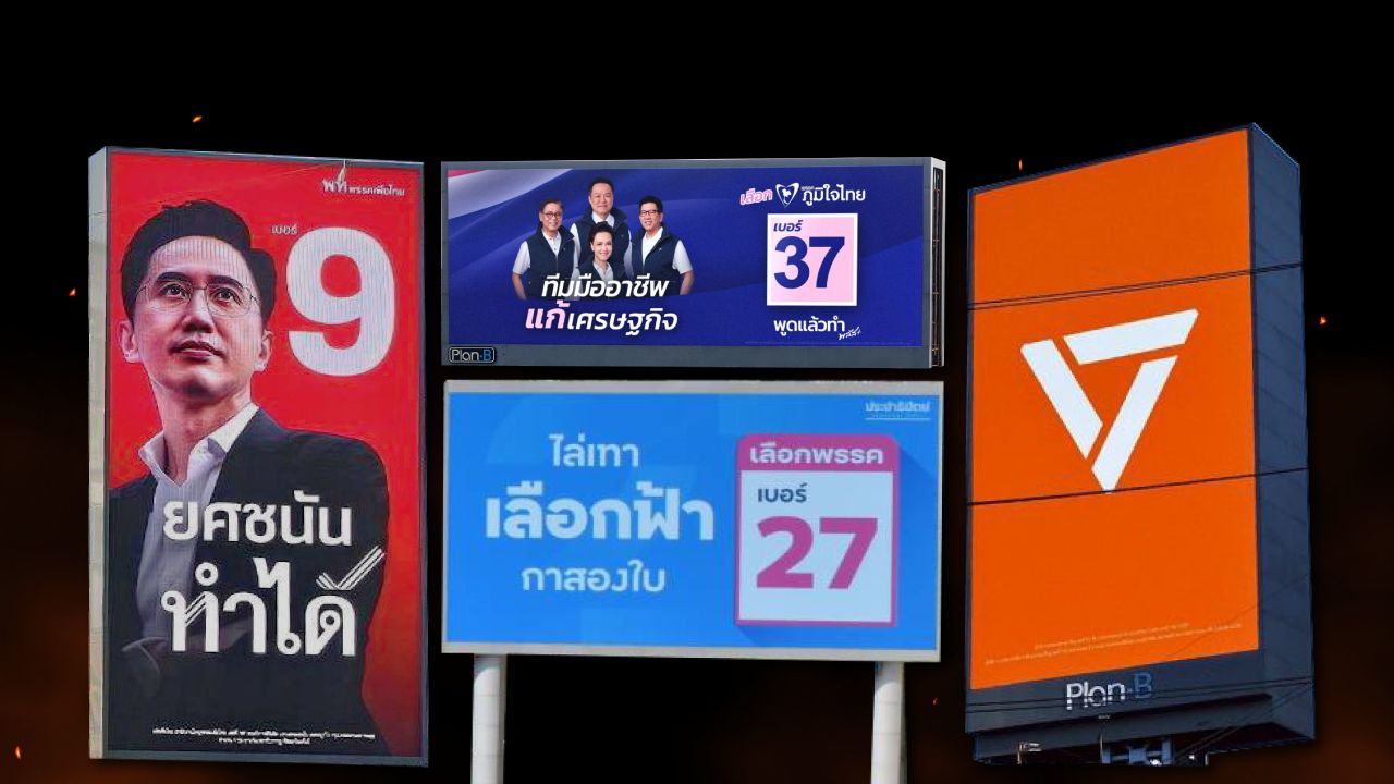 ศึกบิลบอร์ดเดือด โค้งสุดท้ายเลือกตั้ง 2569 "ประชาชน-ภูมิใจไทย-เพื่อไทย-ประชาธิปัตย์-ไทยสร้างไทย" แต่ละพรรคการเมือง เลือกสื่อสารอะไรบ้าง?