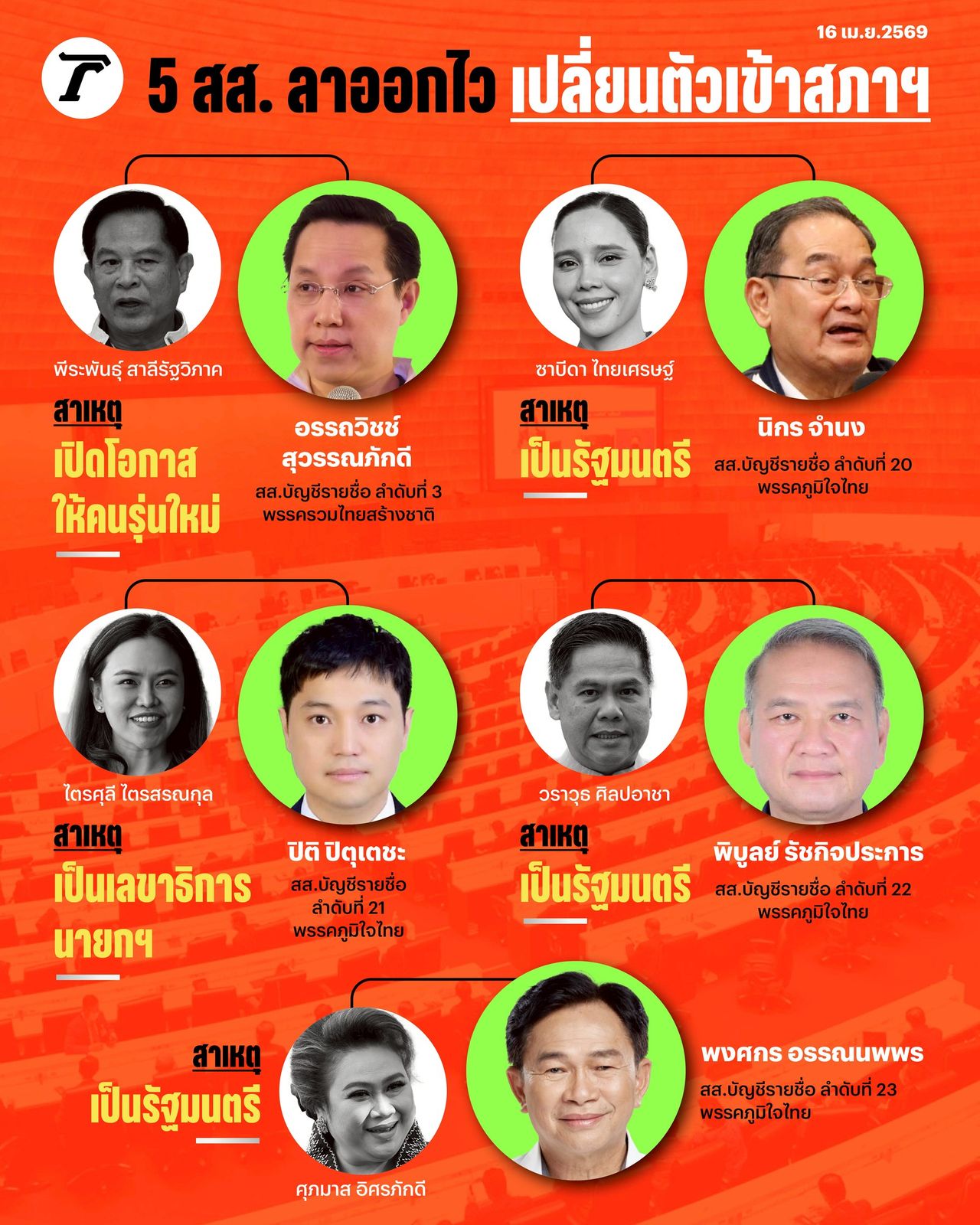 เมื่อเจาะลึกลงไปในรายชื่อ จะพบว่า 4 ใน 5 ของ สส. ที่ลาออก ล้วนเป็นขุนพลและแกนนำจากพรรคแกนนำรัฐบาลอย่าง พรรคภูมิใจไทย การขยับตัวเช่นนี้สะท้อนให้เห็นถึงการบริหารจัดการภายในพรรคที่ต้องการให้ผู้ที่รับตำแหน่งรัฐมนตรี สามารถทุ่มเทเวลา สมาธิ และสรรพกำลังให้กับการบริหารราชการแผ่นดินในกระทรวงของตนได้อย่างเต็มที่ โดยไม่ต้องพะวงกับการเข้าร่วมประชุมสภาฯ ในขณะเดียวกัน ก็เป็นการกระจายโอกาสให้ผู้สมัคร สส. ลำดับถัดไป ซึ่งเป็นบุคลากรของพรรคได้เข้ามาแสดงฝีมือในบทบาทฝ่ายนิติบัญญัติอย่างเต็มเม็ดเต็มหน่วย ไม่ต้องห่วงหน้าพะวงหลัง