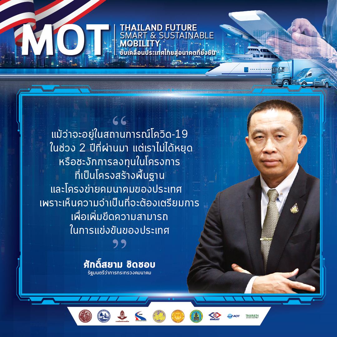 กรณีดังกล่าว กระทรวงคมนาคม ถือเป็นกระทรวงหลักในการดูแลการลงทุนโครงการขนาดใหญ่ ซึ่งเป็นโครงสร้างพื้นฐาน และสาธารณูปโภคของประเทศ โดยนายศักดิ์สยาม ชิดชอบ รัฐมนตรีว่าการกระทรวงคมนาคม กล่าวยืนยันว่า “แม้ว่าจะอยู่ในสถานการณ์โควิด-19 ในช่วง 2 ปีที่ผ่านมา แต่เราไม่ได้หยุดหรือชะงักการลงทุนในโครงการที่เป็นโครงสร้างพื้นฐานและโครงข่ายคมนาคมของประเทศ เพราะเห็นความจำเป็นที่จะต้องเตรียมการเพื่อเพิ่มขีดความสามารถในการแข่งขันของประเทศ รองรับการค้า และการลงทุนใหม่ๆ จากต่างประเทศ ลดต้นทุนโลจิสติกส์ การขนส่ง ซึ่งจะช่วยในการฟื้นฟูเศรษฐกิจไทย
