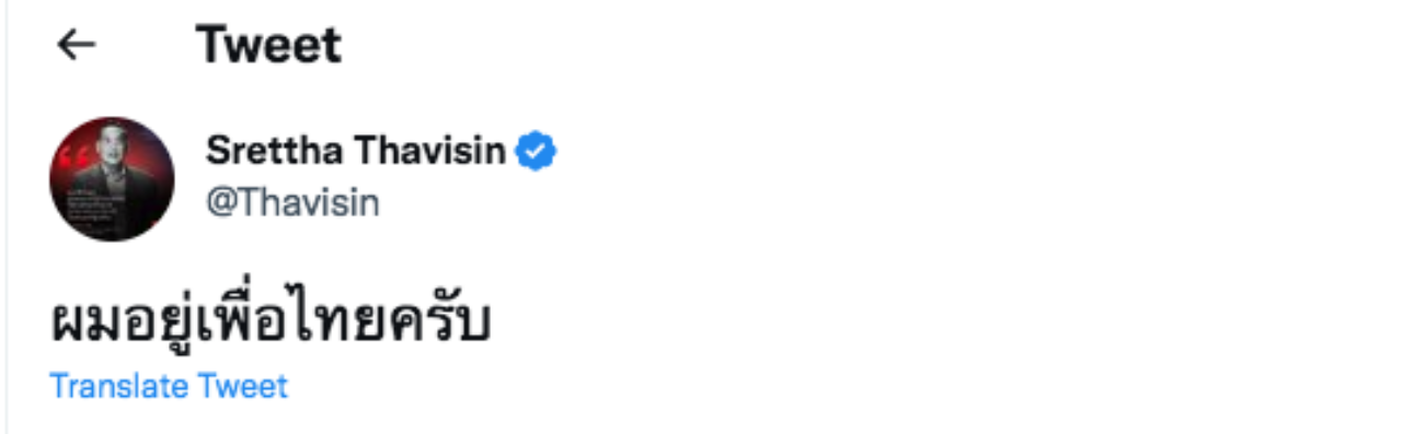 หลังมีการรีทวีตกันสนั่นโลกทวิตเตอร์ ลุกลามไปถึงโซเชียลมีเดียอื่นๆ และสื่อมวลชนเองก็รายงานข่าวกันอย่างต่อเนื่องตลอดทั้งวันว่า “เศรษฐา ทวีสิน” นักธุรกิจอสังหาริมทรัพย์รายใหญ่ ในฐานะประธานอำนวยการ และกรรมการผู้จัดการใหญ่ บริษัท แสนสิริ จำกัด (มหาชน) ยอมรับแล้วว่าจะอยู่พรรคเพื่อไทย จากข้อความที่ “เศรษฐา ทวีสิน” ทวีตประโยคเดียวที่ว่า “ผมอยู่เพื่อไทยครับ”