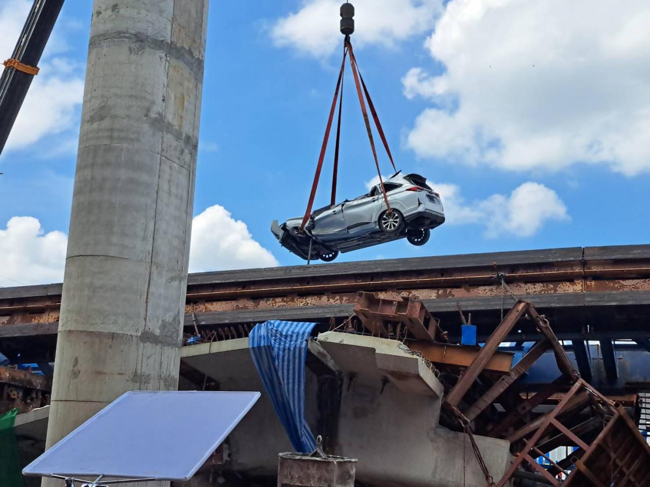 โครงการก่อสร้างทางยกระดับย่านลาดกระบังพังถล่ม รศ.ดร.วัชรินทร์ กาสลัก นายกวิศวกรรมสถานแห่งประเทศไทย ในพระบรมราชูปถัมภ์ (วสท.) และผู้เชี่ยวชาญด้านวิศวกรรมสะพานลงพื้นที่ตรวจสอบจุดเกิดเหตุร่วมกับตำรวจพิสูจน์หลักฐานกลาง และ พนักงานสอบสวน สน.จรเข้น้อย เพื่อเก็บรวบรวมพยานหลักฐานในจุดเกิดเหตุอีกครั้ง นำไปประกอบสำนวนคดี ก่อนจะแจ้งความกับบริษัทผู้รับเหมาต่อไป