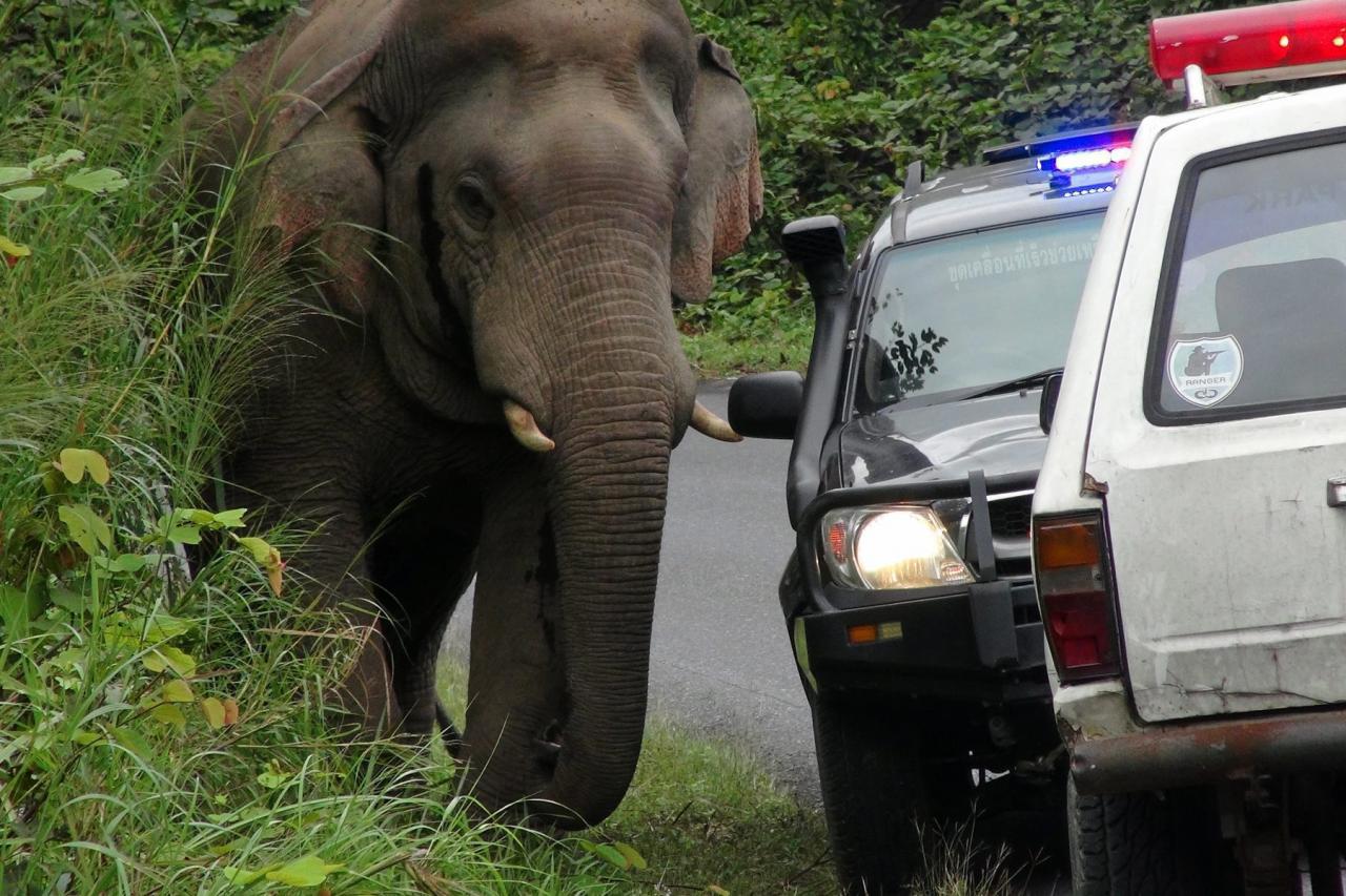ช้างเขาใหญ่มีความโดดเด่น เป็นช้างมีงา สิ่งสำคัญที่ทำให้จำช้างได้ ต้องสังเกตตั้งแต่หัว งา หาง นักท่องเที่ยวที่มา อยากให้ขับรถเร็วไม่เกิน 60 กิโลเมตร/ชั่วโมง เพราะช้างที่ออกมาบริเวณท้ายโค้งพอดี ถ้าขับมาเร็วมองไม่เห็นจะเป็นอันตรายต่อนักท่องเที่ยว เคยมีช้างตัวหนึ่งโดนรถชนนอกเขตอุทยาน แล้วหายเข้าป่าไป 1 ปี มาเห็นอีกที ก็มีลักษณะการเดินผิดปกติ