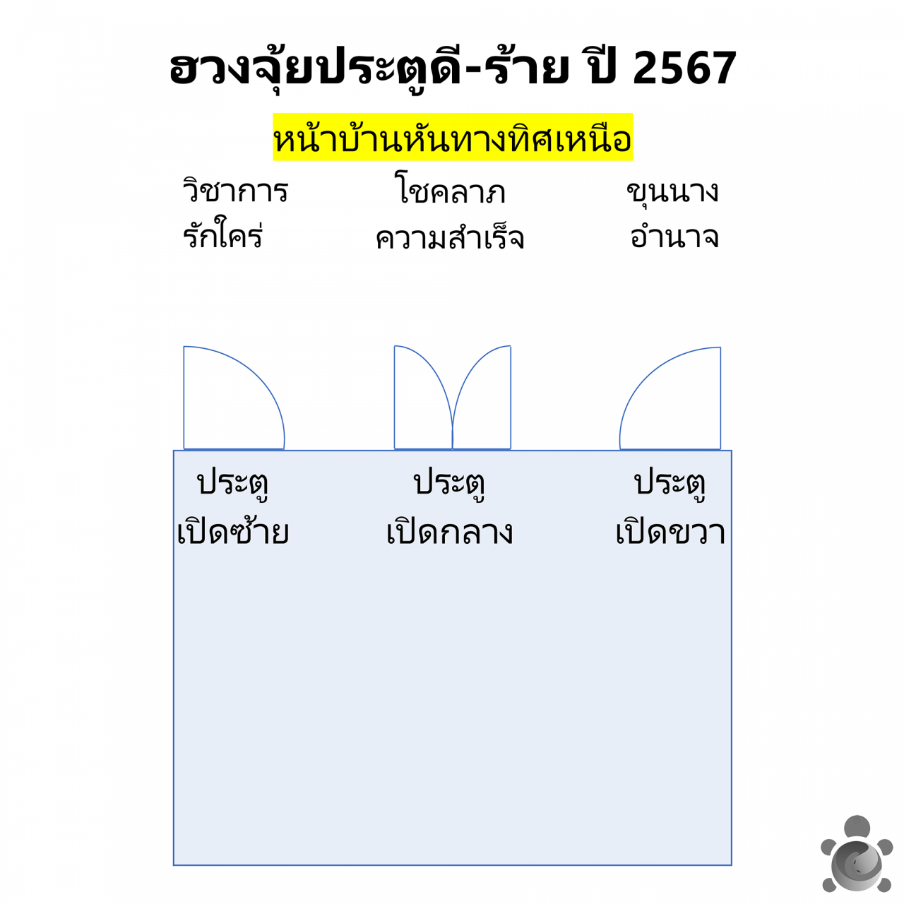 - ทิศเหนือ มีโชคลาภและความสำเร็จ ถ้ายืนอยู่ตรงจุดศูนย์กลางของบ้าน หรือตรงกลางห้องพัก ประตูหันไปทางทิศเหนือ ถือว่าปี 2567 มีโชคลาภเข้ามาหาคนในบ้าน