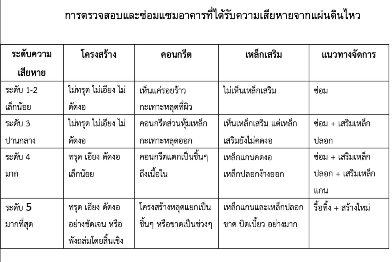 สำหรับการซ่อมแซมเสาที่แตกหัก อาจซ่อมเสริมได้ แต่ถ้าเสียหายหนัก ไม่เสถียร เจ้าของอาคารกังวลว่าตึกจะพัง มีโอกาสที่น้ำหนักตัวข้างบนทำให้เอียงขยับ ต้องรีบซ่อมทันที