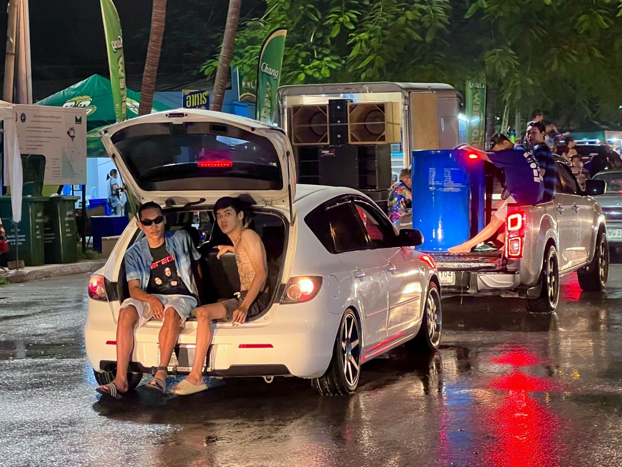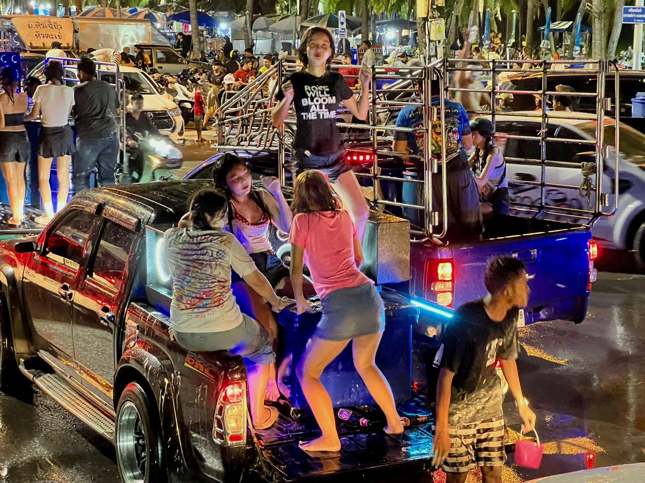 นอกจากนี้ ตลอดทั้งเส้นทางมีเสียงดนตรีเพลงแดนซ์เปิดดังอย่างต่อเนื่อง ช่วยเสริมบรรยากาศการเล่นน้ำให้มีความสนุกสนาน ประชาชนที่โดยสารที่ท้ายกระบะต่างลุกขึ้นมาปลดปล่อยโชว์ลีลากันอย่างเต็มที่