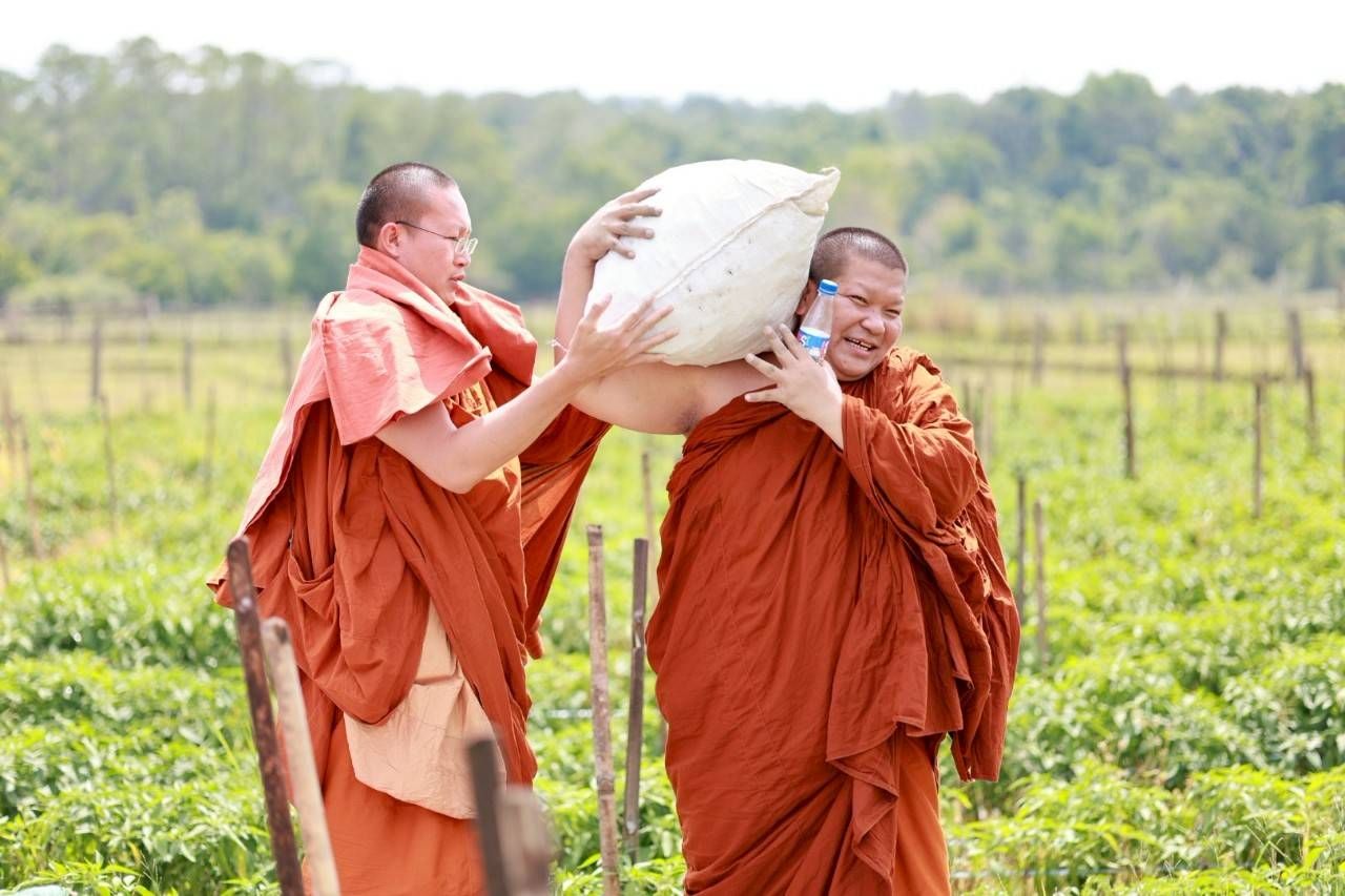ดังนั้น ยามยากลำบาก ชาวบ้านก็ได้อาศัยพึ่งพาพระเช่นเดียวกัน พระเลยต้องหาทางที่ช่วยเกษตรกรให้ได้ เลยเริ่มจากญาติโยมที่อยู่ใกล้มีกำลังทรัพย์ ให้ช่วยทำบุญซื้อพืชผลการเกษตรที่ราคาตกต่ำ แล้วมาถวายที่วัด เพื่อทำการแจกจ่ายให้ชุมชน หน้าที่พระไม่ใช่บทบาทแค่เยียวยาจิตใจ แต่ต้องทำอย่างไรให้อยู่กับสังคมของโลกและสังคมของธรรม จึงเป็นทางที่ต้องคู่ขนานกัน