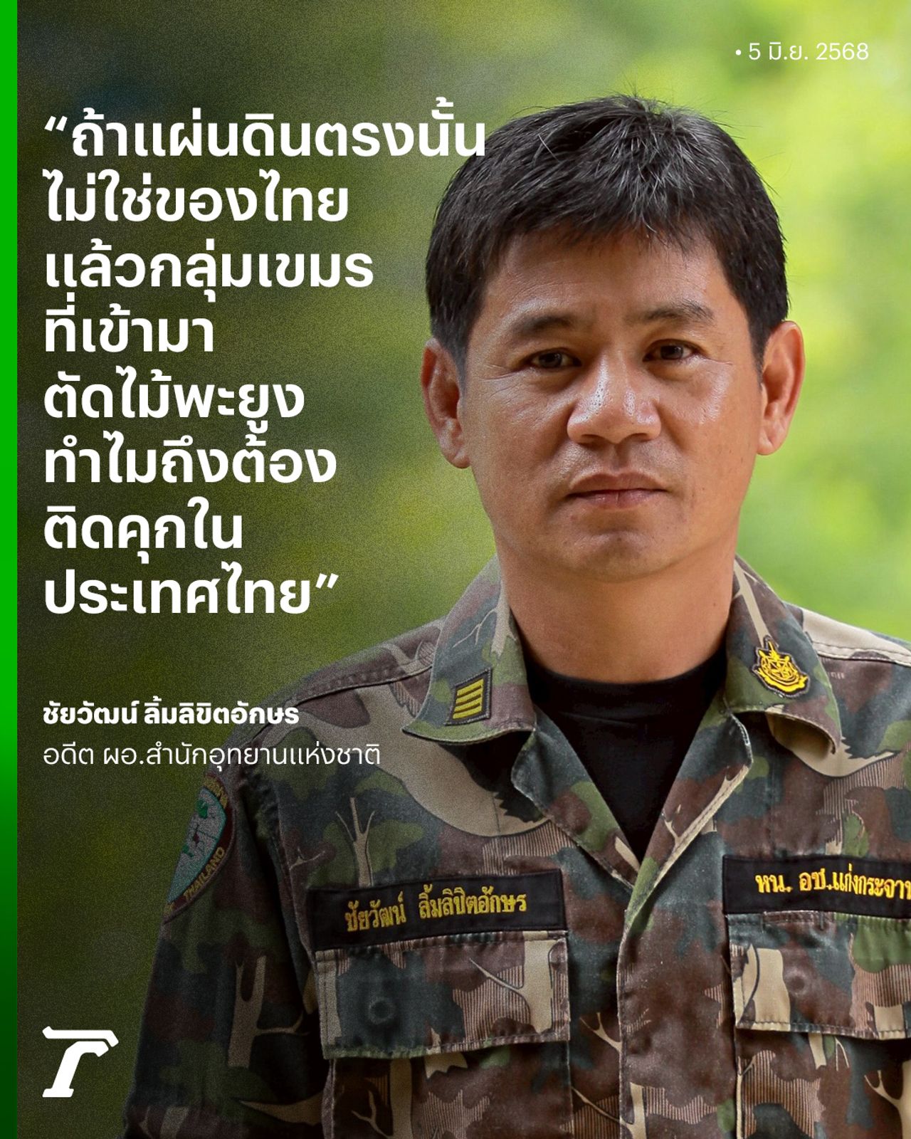 ชัยวัฒน์ ลิ้มลิขิตอักษร อดีตผู้อำนวยการสำนักอุทยานแห่งชาติ กรมอุทยานแห่งชาติ สัตว์ป่า และพันธุ์พืช โพสต์ผ่านโซเชียลมีเดีย ถึงกรณีปัญหาชายแดนระหว่างประเทศไทย และกัมพูชา ตั้งคำถามว่า ถ้าแผ่นดินตรงนั้นไม่ใช่พื้นที่ของไทย พื้นที่ตรงนั้นไม่ใช่พื้นที่ของอุทยานแห่งชาติไทย แล้วเขมรที่เข้ามาตัดไม้พะยูง ทำไมถึงต้องติดคุกในประเทศไทย