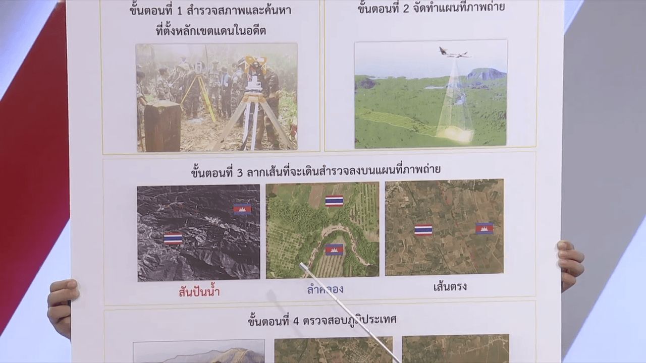 เจ้ากรมแผนที่ทหาร เปิดเผยความคืบหน้าว่าตอนนี้ไทยและกัมพูชา เสร็จสิ้นในขั้นตอนที่ 1 คือลงพื้นที่สำรวจหลักเขตเดิมในอดีตครบทั้ง 74 หลัก แต่ยังไม่เข้าสู่ขั้นตอนการบินสำรวจ