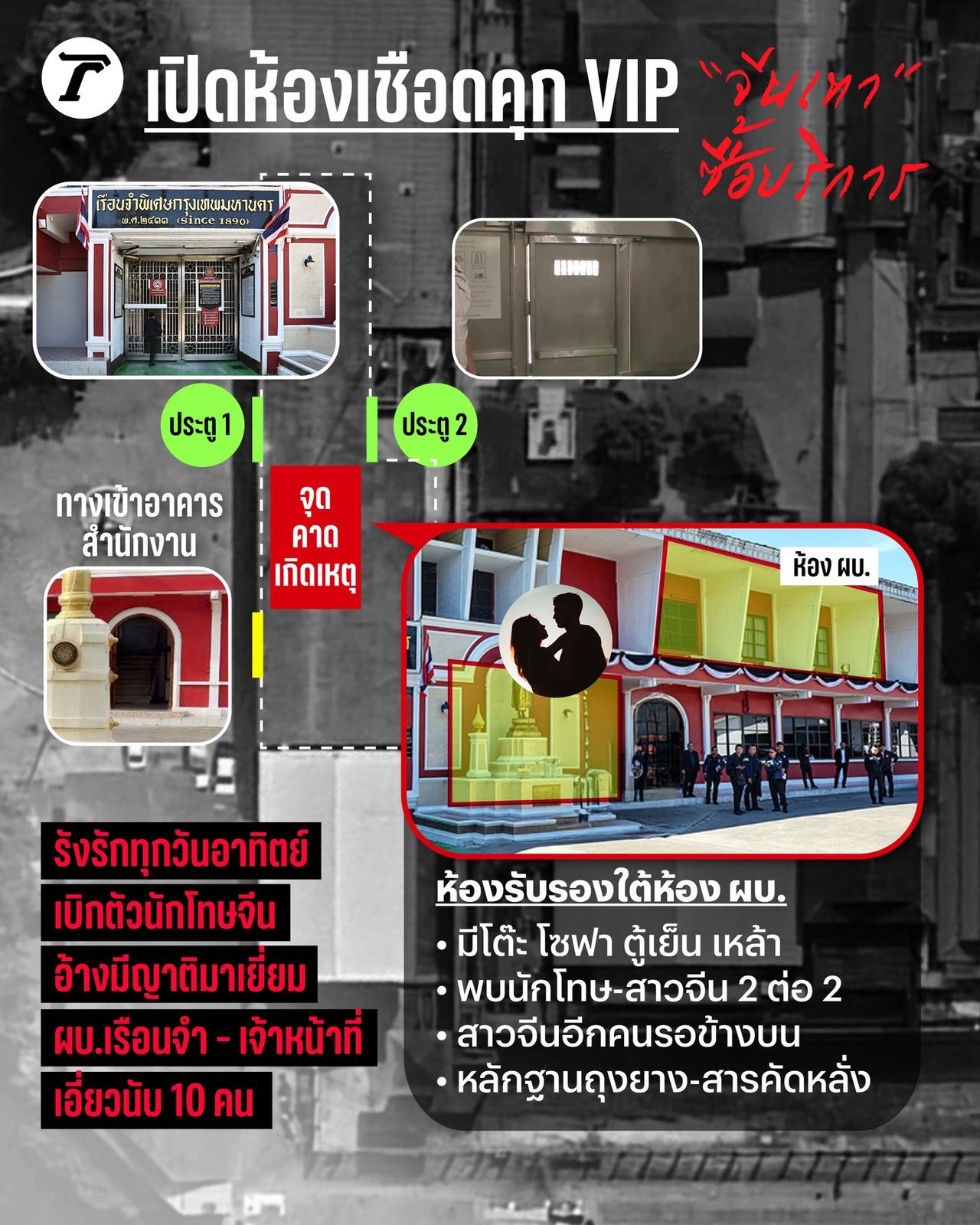 เปิดพิกัด “ห้องเชือดคุก VIP” พาสาวเข้าปรนเปรอนักโทษจีนเทาทุกวันอาทิตย์ โซฟา-ตู้เย็น-สุรา ครบครัน "หมอเหวง" ไขสาเหตุ ฉวยโอกาสวันที่คนไม่พลุ่กพล่าน-นักโทษพักผ่อน เล่นกีฬา