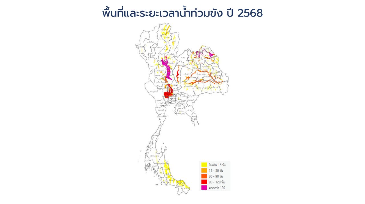 ดร.ปกรณ์ เพ็ชรประยูร ผู้อำนวยการสำนักประยุกต์และพัฒนาภูมิสารสนเทศ เล่าให้ทีมข่าวเฉพาะกิจ ไทยรัฐออนไลน์ ถึงสถานการณ์น้ำท่วมในปี 2568 ที่จะมีอิทธิพลต่อพื้นที่น้ำท่วมในปี 2569 ว่า จากข้อมูลภาพถ่ายดาวเทียมพบว่า ปี 2568 มีน้ำท่วมทั่วประเทศ 9 ล้านไร่ ซึ่งพื้นที่น้ำท่วมไล่ตั้งแต่ลุ่มน้ำเจ้าพระยา ที่ได้รับผลกระทบจากน้ำท่วมนาน และมีอิทธิพลทำให้เกิดน้ำท่วมซ้ำซากในพื้นที่อยุธยา ปกติน้ำท่วมขังในพื้นที่ 1 – 2 สัปดาห์น้ำก็จะลด แต่ปัจจุบันบางพื้นที่มีน้ำท่วมขัง 2 – 3 เดือน