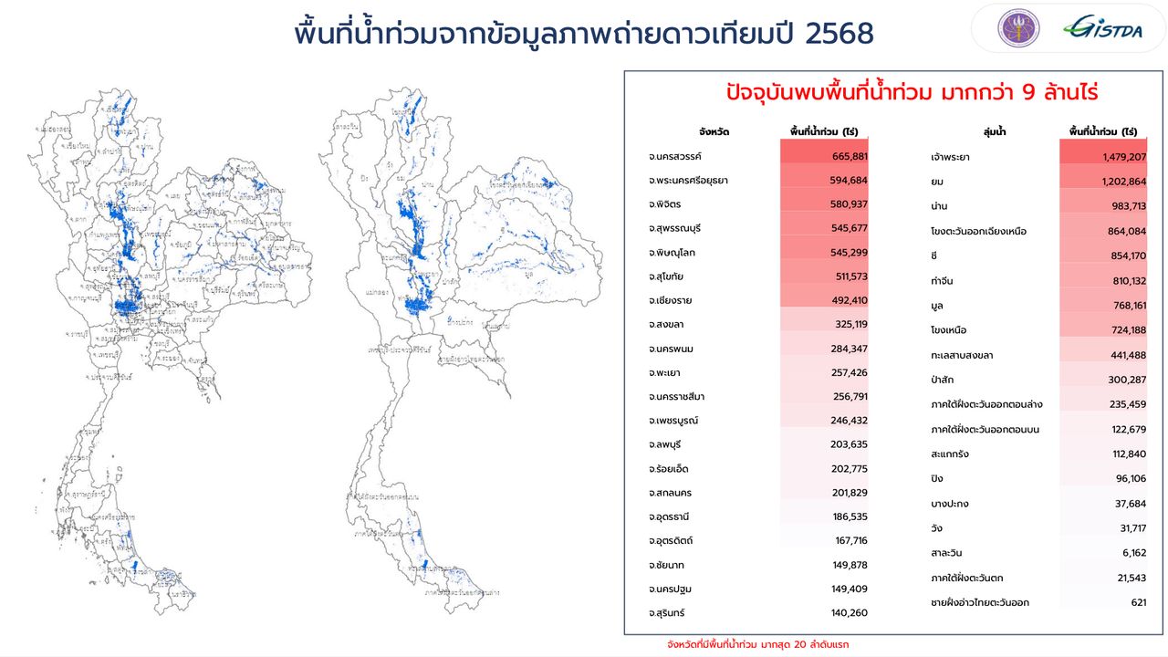 ถ้าสรุปจากข้อมูลดาวเทียมถึงปริมาณน้ำท่วมในปี 2568 ดังนี้