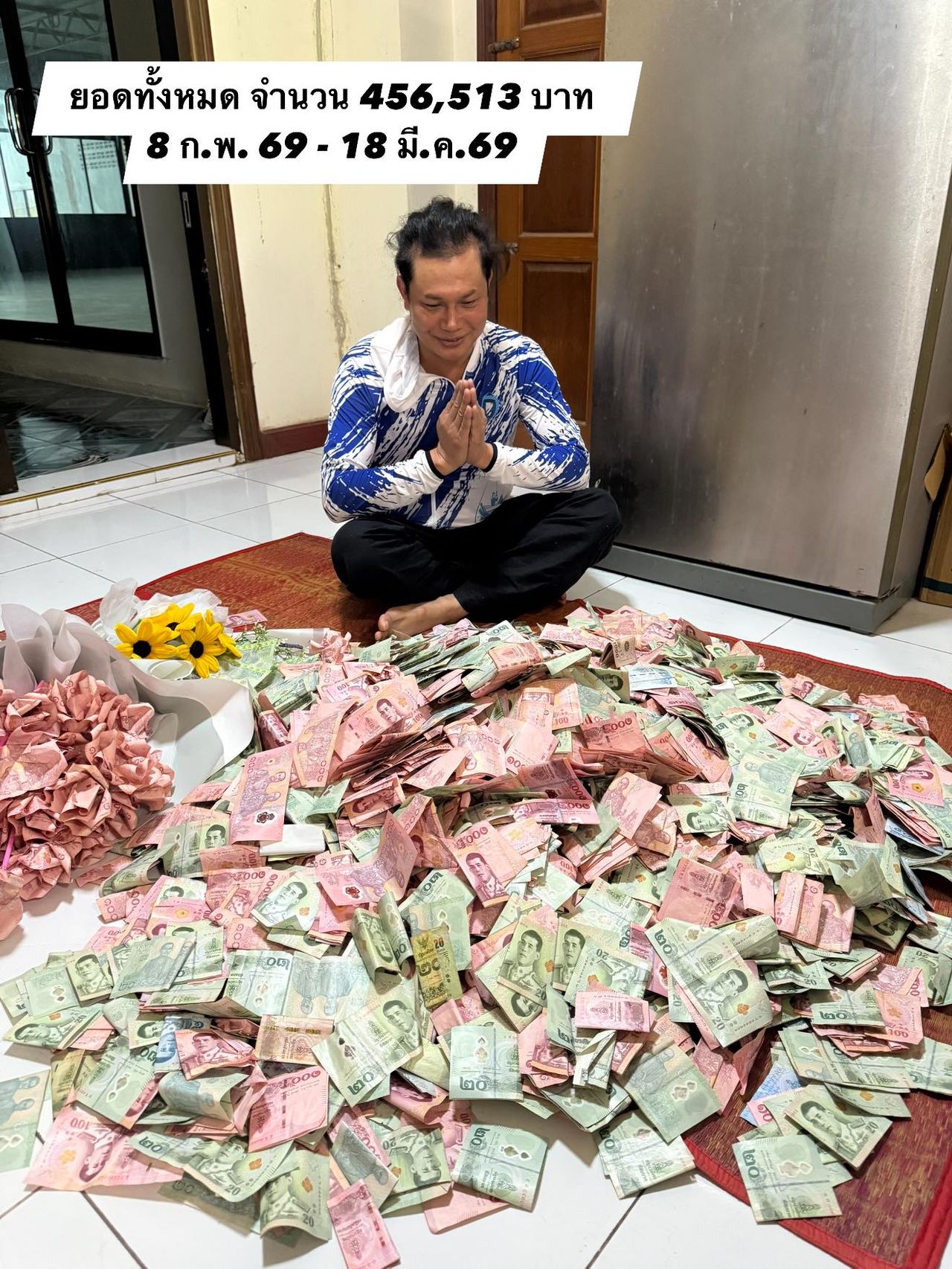 วันนี้ 19 มี.ค.69 เพจไหมไทย หัวใจศิลป์ ได้โพสต์ภาพเงินที่ได้ทิปจากหน้าเวทีตั้งแต่วันที่ 8 ก.พ. - 18 มี.ค. 69 ยอดทั้งหมดจำนวนเงิน 456,513 บาท และได้โพสต์ว่า “ปัจจัยของแฟนเพลงทั้งหมดนี้ จะนำไปต่อยอดบุญ เพื่อสังคม อนุโมทนาสาธุกับแฟนเพลงทุกท่าน ขอให้มีสุขภาพ ร่างกายแข็งแรง เจริญรุ่งเรืองในทุกๆ ด้านครับ”