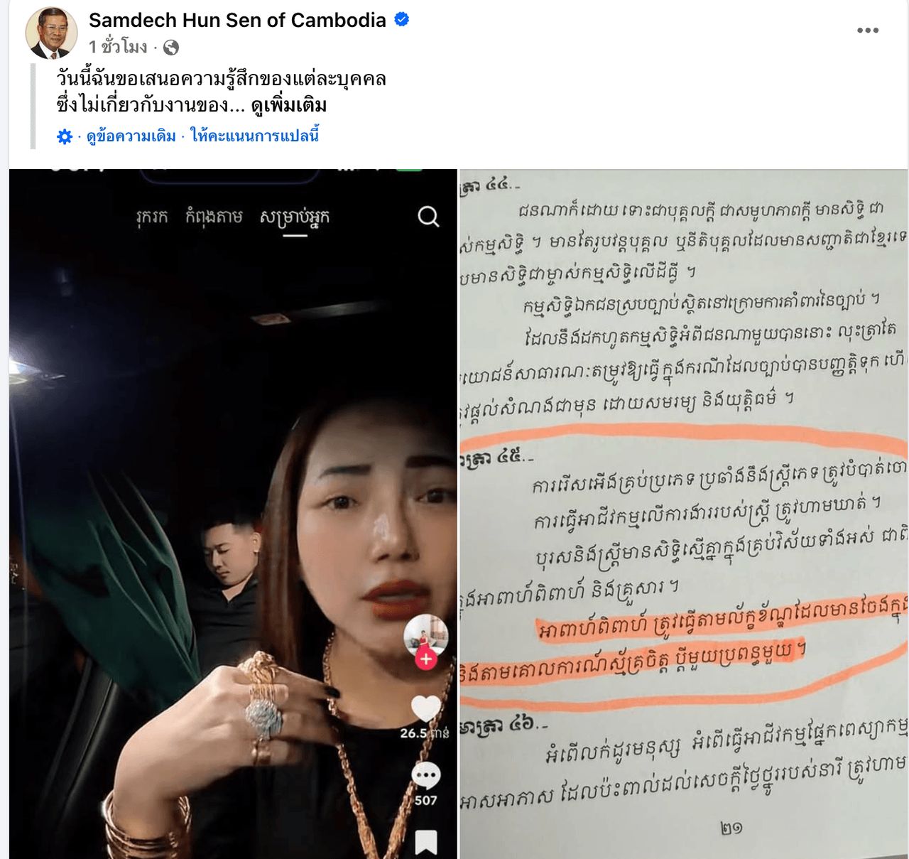 สนั่นโซเชียลกัมพูชา สาวมีสามี 2 คน “ฮุนเซน” วิจารณ์แหวกประเพณี ผัวเดียว เมียเดียว ถามเรื่องจริงหรือ?