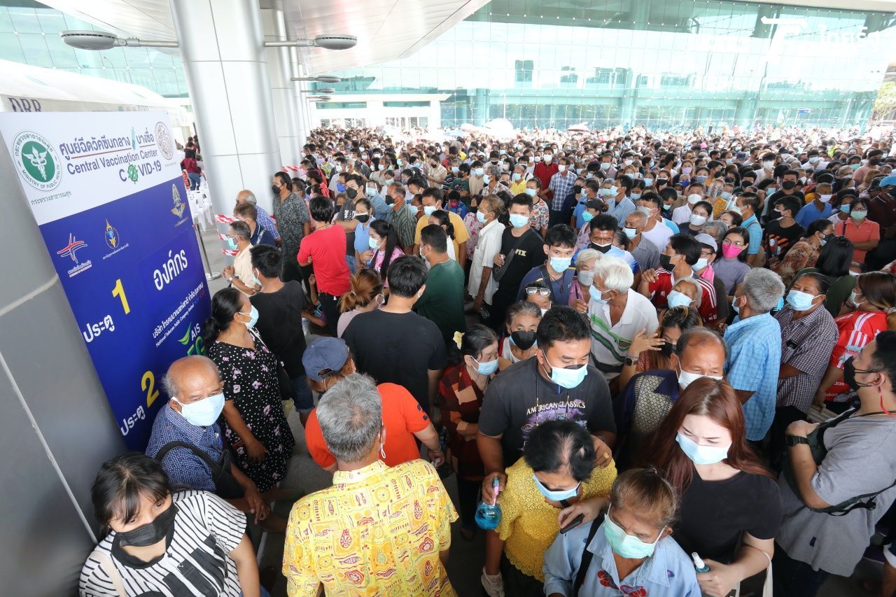 เบื้องหน้าคือคลื่นมหาชน เบื้องหลังก็คลื่นมหาชน หรือความจริงคือรอบๆ ตัวนั้นเต็มไปด้วยผู้คนมากมาย จุดเกิดเหตุการณ์วันนี้เหมือนภาพซ้ำที่ศูนย์ฉีดวัคซีนสถานีกลางบางซื่อ ที่ทุกคนต่างลืมความสำคัญของการเว้นระยะห่าง เพื่อป้องกันโรคแพร่ระบาด เพราะมีเรื่องสำคัญกว่าที่ต้องลุ้นอยู่ตรงหน้า คือการได้ฉีดวัคซีนโควิด-19 ให้ได้