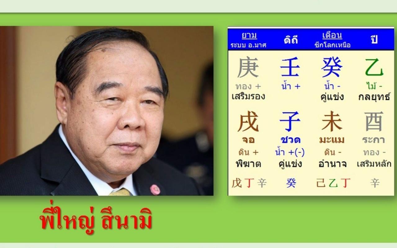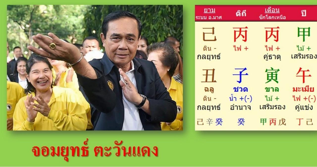 “บิ๊กตู่” พล.อ.ประยุทธ์ จันทร์โอชา เกิดวันที่ 21 มีนาคม พ.ศ. 2497 ช่วงเช้าเวลา 04.10 น. จ.นครราชสีมา อายุ 67 ปี เป็นคนธาตุไฟหยาง เหมือนพระอาทิตย์ ฉายา “จอมยุทธ์ ตะวันแดง” เกิดในเดือนธาตุไม้ ฤดูกาลส่งเสริม สว่างไสว ร้อนแรง ขี้โมโห โกรธง่ายหายเร็ว มีธาตุสำคัญ หรือธาตุให้คุณ คือ ดิน ทอง น้ำ และในดวงมีดาวไฉ่โข่ว หรือดาวคลังสมบัติ เสริมกัน แข็งแรง มั่นคง จึงร่ำรวยมหาศาล ตามที่เคยแสดงบัญชีทรัพย์สินเกือบพันล้าน