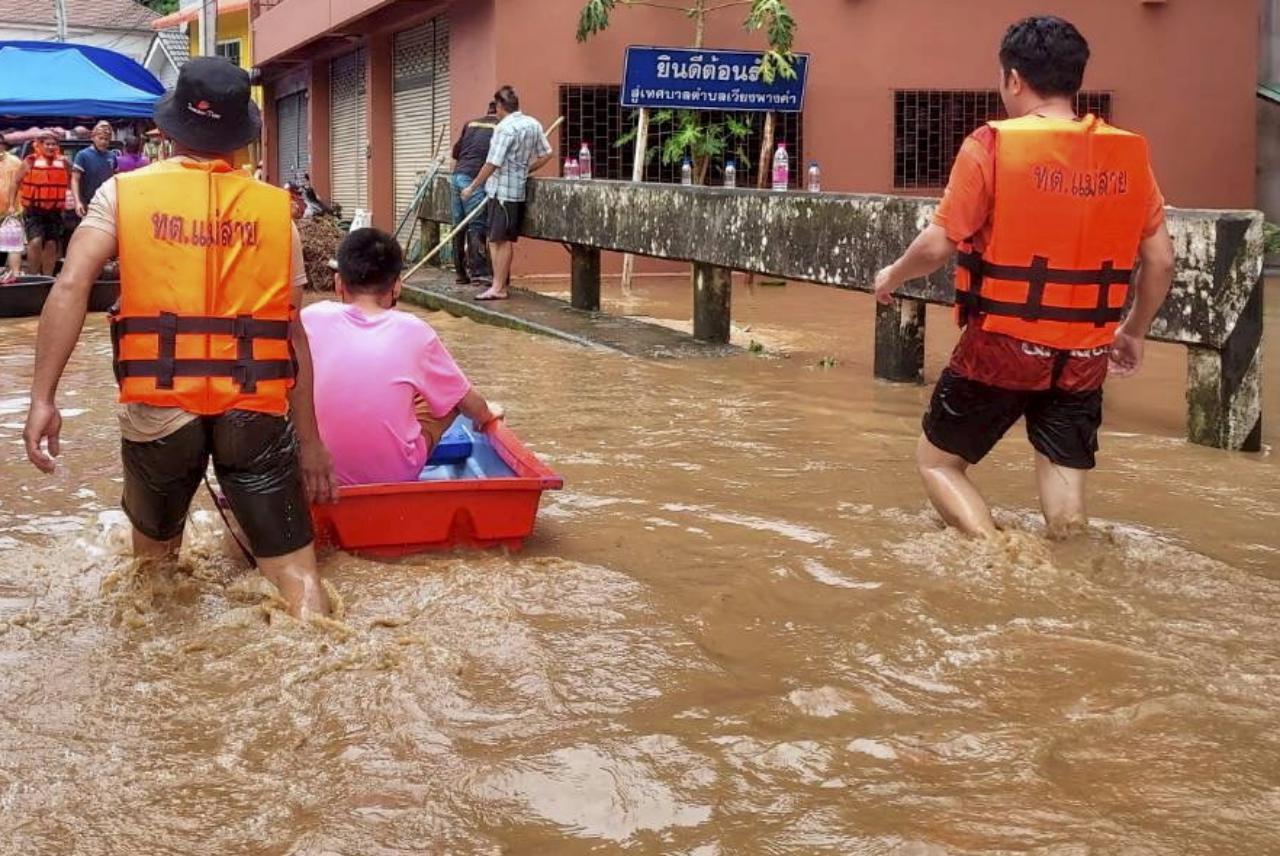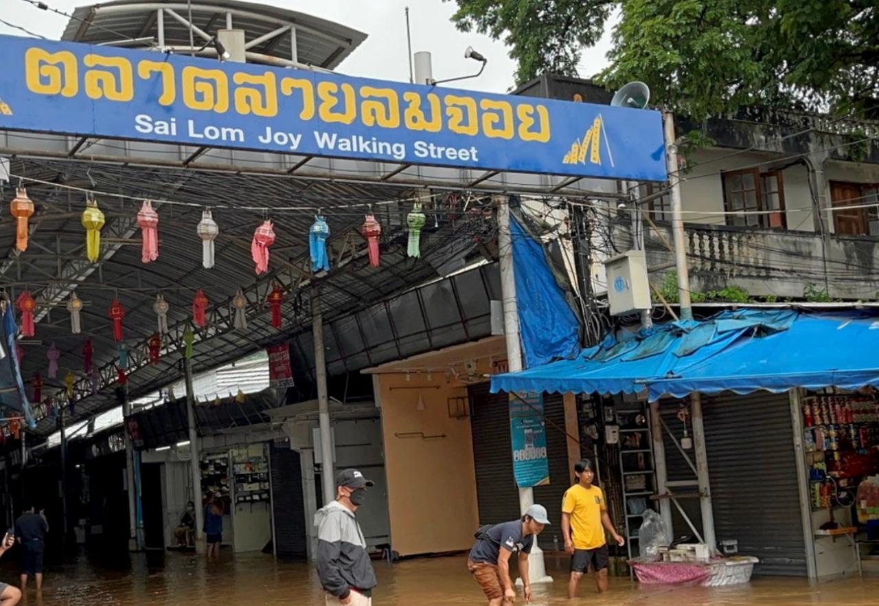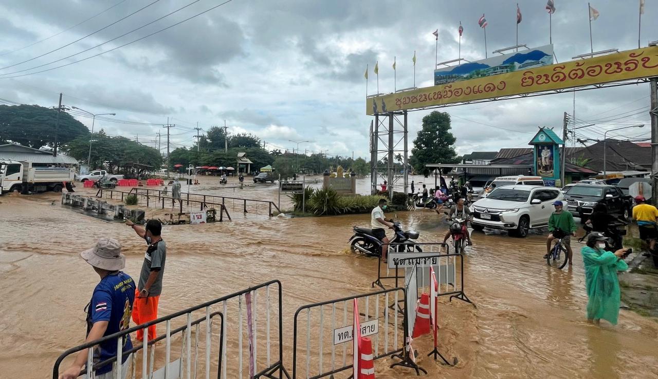 ส่วนสถานการณ์น้ำท่วมในอ.แม่สาย จ.เชียงราย หนักสุดในรอบ 20 ปี ภายหลังระดับน้ำแม่น้ำสายบริเวณชายแดนไทย-เมียนมา เพิ่มขึ้นสูงเกิน 6 เมตร ได้เอ่อทะลักเข้าท่วมชุมชนริมน้ำทั้งสองฝั่ง และน้ำทะลักล้นแนวกั้นเข้าท่วมตลาดสายลมจอย เขตเทศบาลตำบลแม่สาย และบ้านเรือนประชาชนในชุมชนพื้นที่ชั้นใน เช่นเดียวกับฝั่งจ.ท่าขี้เหล็ก ประเทศเมียนมา น้ำได้ล้นแนวกั้นคอนกรีตเข้าท่วมตลาด ร้านค้า และชุมชน อย่างหนัก