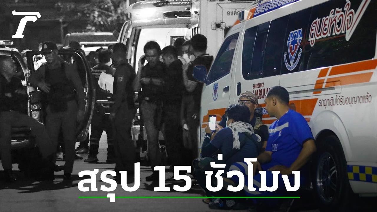 - 17.30 น. มีรายงานในพื้นที่ว่ามีผู้เสียชีวิต 3 ศพ บาดเจ็บ 2 ราย จากการสอบสวนเบื้องต้น พบว่าผู้ก่อเหตุคือ นายอนุวัช แหวนทอง อายุ 30 ปี เคยถูกจับกุมคดียาเสพติด