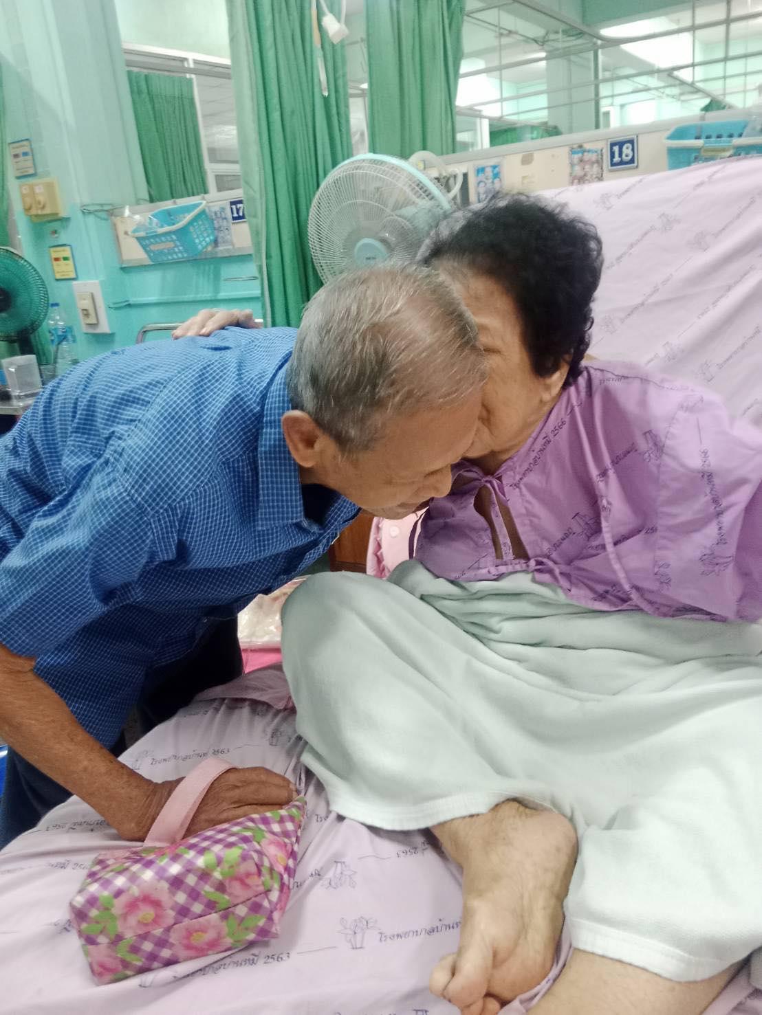 ด้วยความที่คุณตาอายุ 87 ปี ทำให้เดินทางไม่สะดวก เป็นโรคเกาต์ ที่ผ่านมาตากับยายอยู่ด้วยกันตลอด ไม่เคยแยกห่างจากกัน รวมเวลาก็เกินกว่า 60 ปี โดยมีลูกด้วยกัน 7 คน ทำให้มีความผูกพันในชีวิตคู่ แต่พอต้องมานอนที่โรงพยาบาล คุณยายก็ไม่อยากไป
