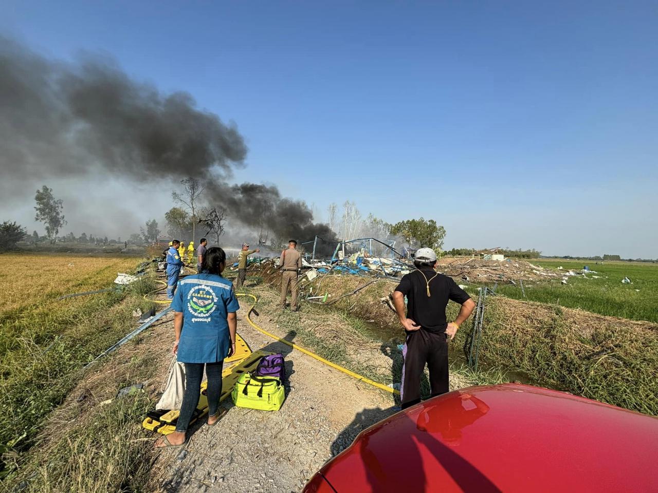 ทีมข่าวเจาะประเด็น ไทยรัฐออนไลน์ สอบถามไปยัง นันทวุฒิ คงวงษ์ เจ้าหน้าที่กู้ภัย สมาคมร่วมใจสวนแตง สุพรรณบุรี ที่ช่วยเหลือผู้บาดเจ็บในพื้นที่ให้ข้อมูลว่า เบื้องต้นเหตุโรงงานพลุระเบิด เจ้าหน้าที่สามารถควบคุมเพลิงได้ อยู่ระหว่างระดมทีมพิสูจน์หลักฐานเข้าไปในพื้นที่ ซึ่งทีมกู้ภัยต้องใช้ความระมัดระวังในการเข้าไปในพื้นที่โรงงาน เนื่องจากมีสารที่ผลิตพลุตกค้างอยู่ ตอนนี้ทีมกู้ภัยพยายามฉีดน้ำสกัด เพราะกลัวเชื้อเพลิงของพลุตกค้างจะปะทุ