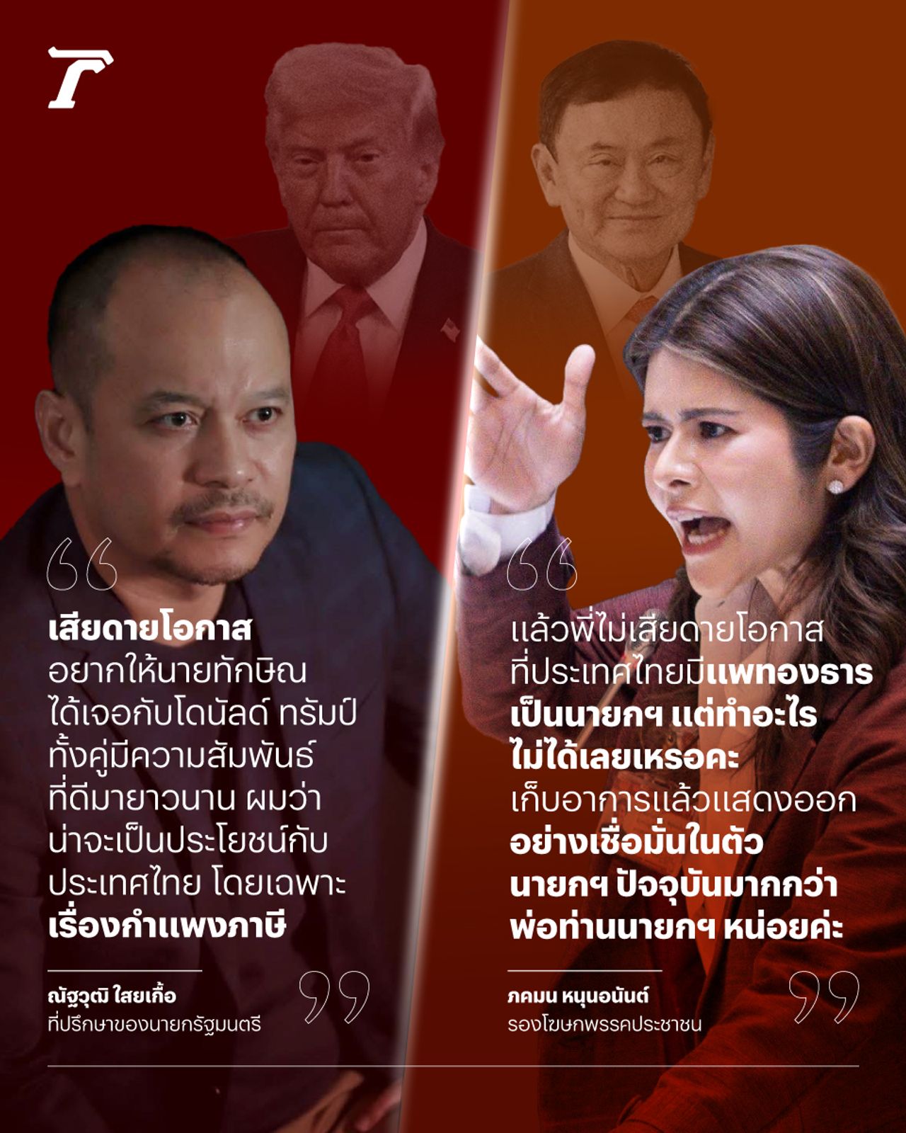 ผมไม่กังวลที่ดร.ทักษิณไม่ได้เดินทาง ทุกครั้งที่ท่านขอแล้วศาลไม่อนุญาตก็เฉยๆ เพราะเข้าใจกระบวนการ แต่คราวนี้พูดตรงๆ ว่าเสียดายโอกาส เพราะดร.ทักษิณกับประธานาธิบดีทรัมป์มีสัมพันธภาพที่ดีกันมายาวนานตั้งแต่ทั้งคู่ยังเป็นนักธุรกิจ หากได้เจอกันในสถานการณ์กำแพงภาษี แม้ไม่มีวาระหารืออย่างเป็นทางการ แต่ก็น่าจะมีบทสนทนาไม่ว่าจะกับโดนัลด์ ทรัมป์เองหรือทีมงานที่เป็นประโยชน์ และนำมาขยายผลในกระบวนการเจรจาระหว่าง 2 ประเทศได้