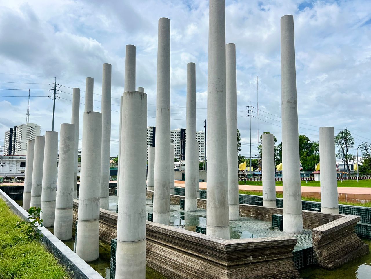 ต่อมา ได้พาไปชม #เสาปูน ในการจัดสร้างฐานพระบรมราชานุสาวรีย์ พระบาทสมเด็จพระปกเกล้าเจ้าอยู่หัว โดยมีเสาปูนประติมากรรมตั้งเรียงอยู่หลายเสา โดย สส.ภัณฑิล ระบุว่า ได้ข่าวว่าเสาเหล่านี้จะถูกเลื่อยออก ทำให้ต้องเสียงบประมาณเป็นหลักสิบล้านบาท