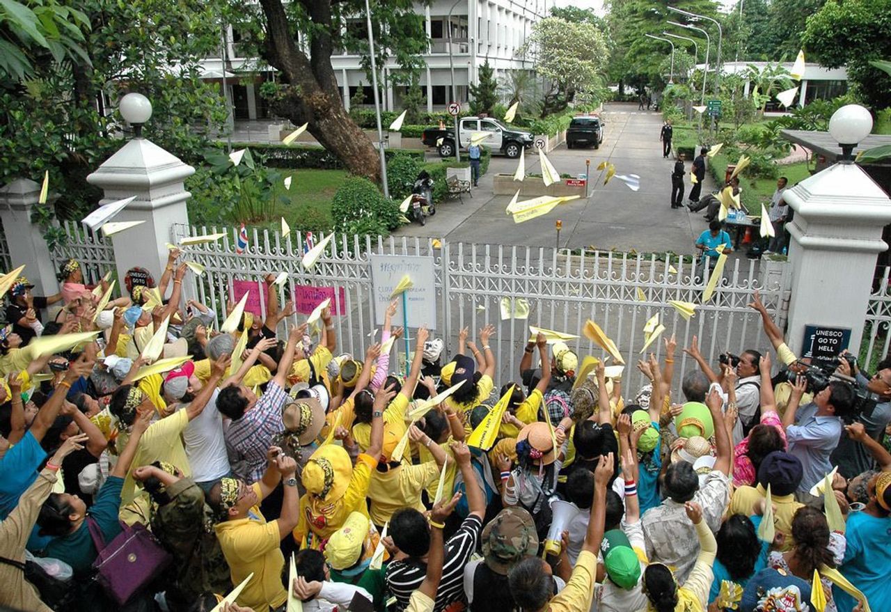 ต่อมาใน พ.ศ. 2492 ไทยได้เข้าครอบครองปราสาทพระวิหาร ฝรั่งเศสในฐานะผู้ปกครองกัมพูชาได้ส่งหนังสือประท้วงต่อทางการไทยหลายฉบับ อ้างว่าปราสาทพระวิหารอยู่ในเขตแดนกัมพูชาและขอให้ไทยถอนผู้ดูแลปราสาทออกไป และเมื่อกัมพูชาได้รับเอกราชในปี พ.ศ. 2496 ก็ได้ส่งผู้ดูแลไปปราสาทพระวิหารแต่เจอผู้ดูแลคนไทยอยู่ก่อนแล้วจึงล่าถอยออกไป แต่ได้ส่งหนังสือถึงรัฐบาลไทยหลายครั้ง จนเกิดการเจรจาในเดือนสิงหาคม พ.ศ. 2501 แต่ก็ไม่สามารถตกลงกันได้ เกิดการประท้วงรุนแรงในหมู่ประชาชน มีการเคลื่อนขบวนไปสถานทูตกัมพูชาจนเกิดการปะทะกับตำรวจ มีผู้บาดเจ็บและทรัพย์สินเสียหาย นับเป็นการชุมนุมครั้งรุนแรงที่สุดครั้งหนึ่งในประวัติศาสตร์ไทย