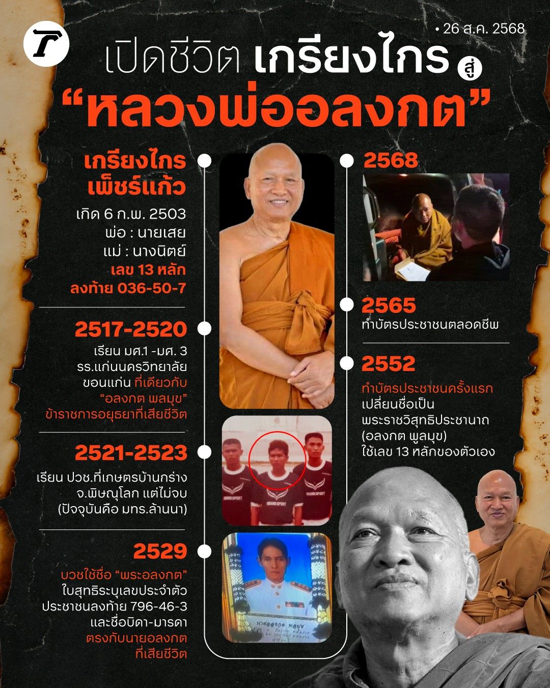 เปิดไทม์ไลน์เปลี่ยนชื่ออลวน จาก “เกรียงไกร” สู่ “หลวงพ่ออลงกต” ใช้เลขบัตรประชาชนคนตายในใบสุทธิ เปิดบัญชีผูกพร้อมเพย์รับบริจาคเข้ากองทุนวัด เกิดข้อสงสัยตั้งใจสวมบัตรหรือไม่?