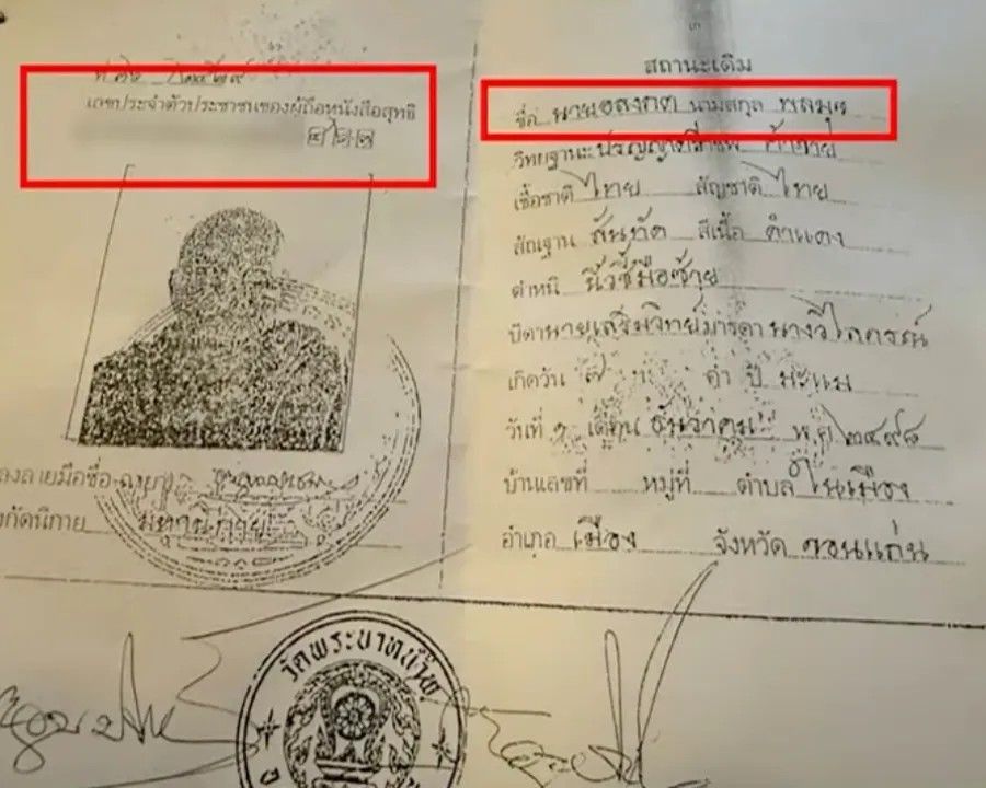 ในใบสุทธิของอดีตพระอลงกต ระบุชื่อ, หมายเลขประจำตัวประชาชน 13 หลัก และชื่อบิดา-มารดา ตรงกับ “นายอลงกต พลมุข” ข้าราชการใน จ.อยุธยา ที่เสียชีวิตไปเมื่อปี 2566 และใช้หมายเลข 13 หลักนี้ไปเปิดบัญชีธนาคาร ผูกพร้อมเพย์เข้ากับบัญชีรับบริจาคของวัด