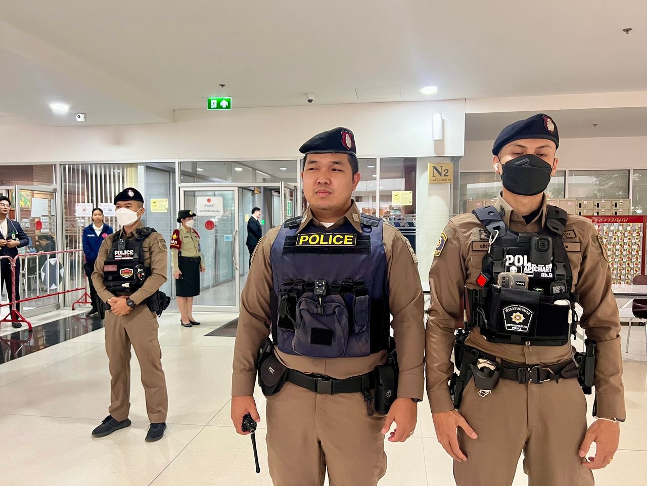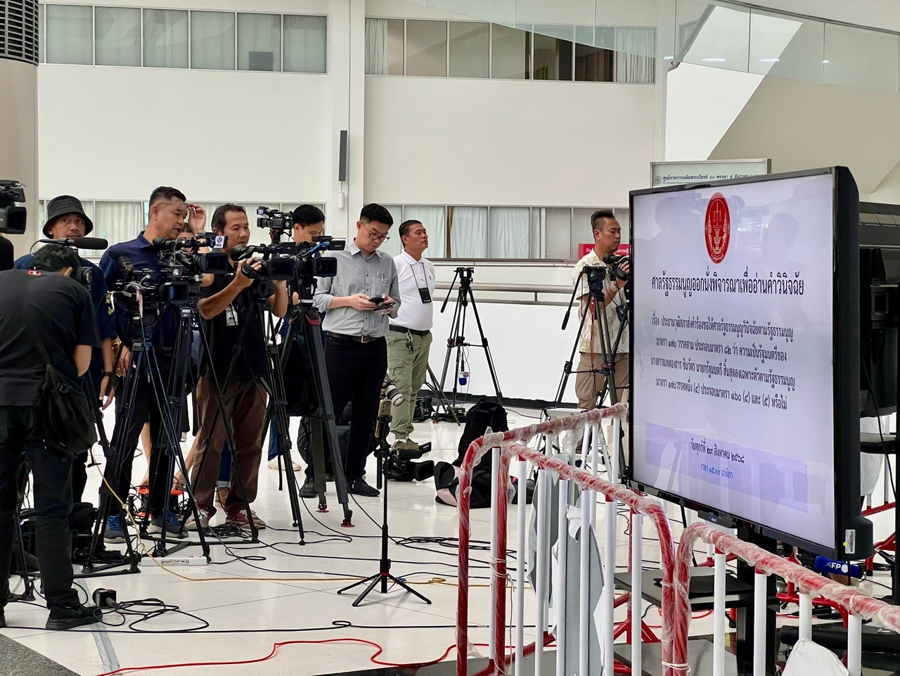 เจ้าหน้าที่ตำรวจ และเจ้าหน้าที่รักษาความปลอดภัยดูแลพื้นที่บริเวณด้านหน้าศาลรัฐธรรมนูญอย่างเข้มงวด ท่ามกลางสื่อมวลชนจำนวนมากที่มาเฝ้าติดตามรอรายงานข่าว / 29 สิงหาคม 2568