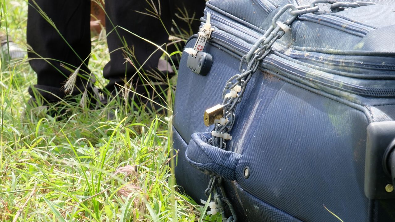 ผู้ที่พบกระเป๋าเล่าว่า เจอกระเป๋าเดินทางขนาดใหญ่ สีดำ มีโซ่ล่าม ล็อกแม่กุญแจแน่นหนา และมีเลือด น้ำเหลือง ไหลออกมา แถมยังมีกลิ่นเหม็นเน่าฟุ้งไปทั่วบริเวณ
