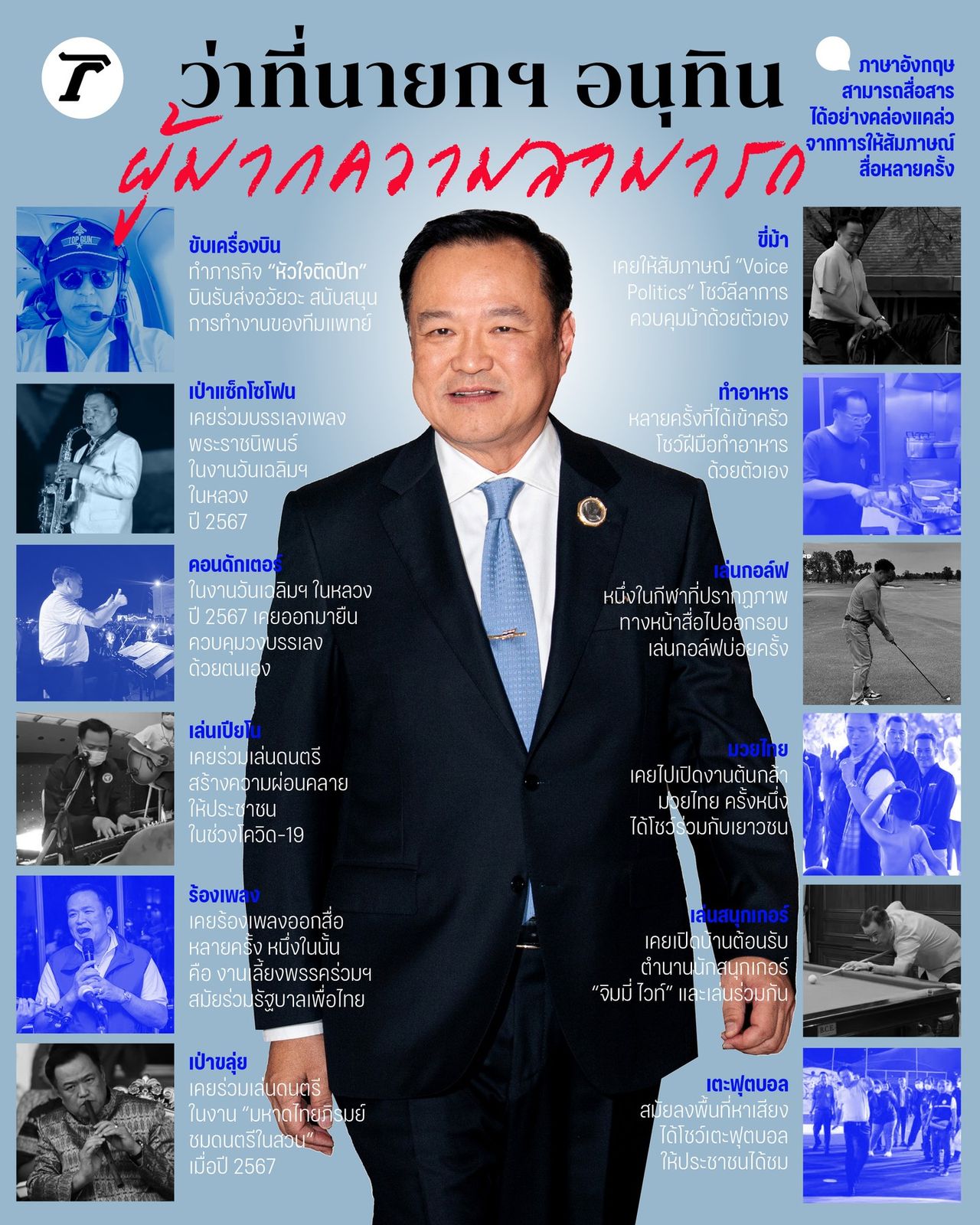 ส่องกิจกรรม นายกคนที่ 32 อนุทิน ชาญวีรกูล หัวหน้าพรรคภูมิใจไทย นอกจากภารกิจการขับเครื่องบินช่วยเหลือผู้ได้รับความเดือดร้อนแล้ว ยังมีกิจกรรมด้านบันเทิงและดนตรี