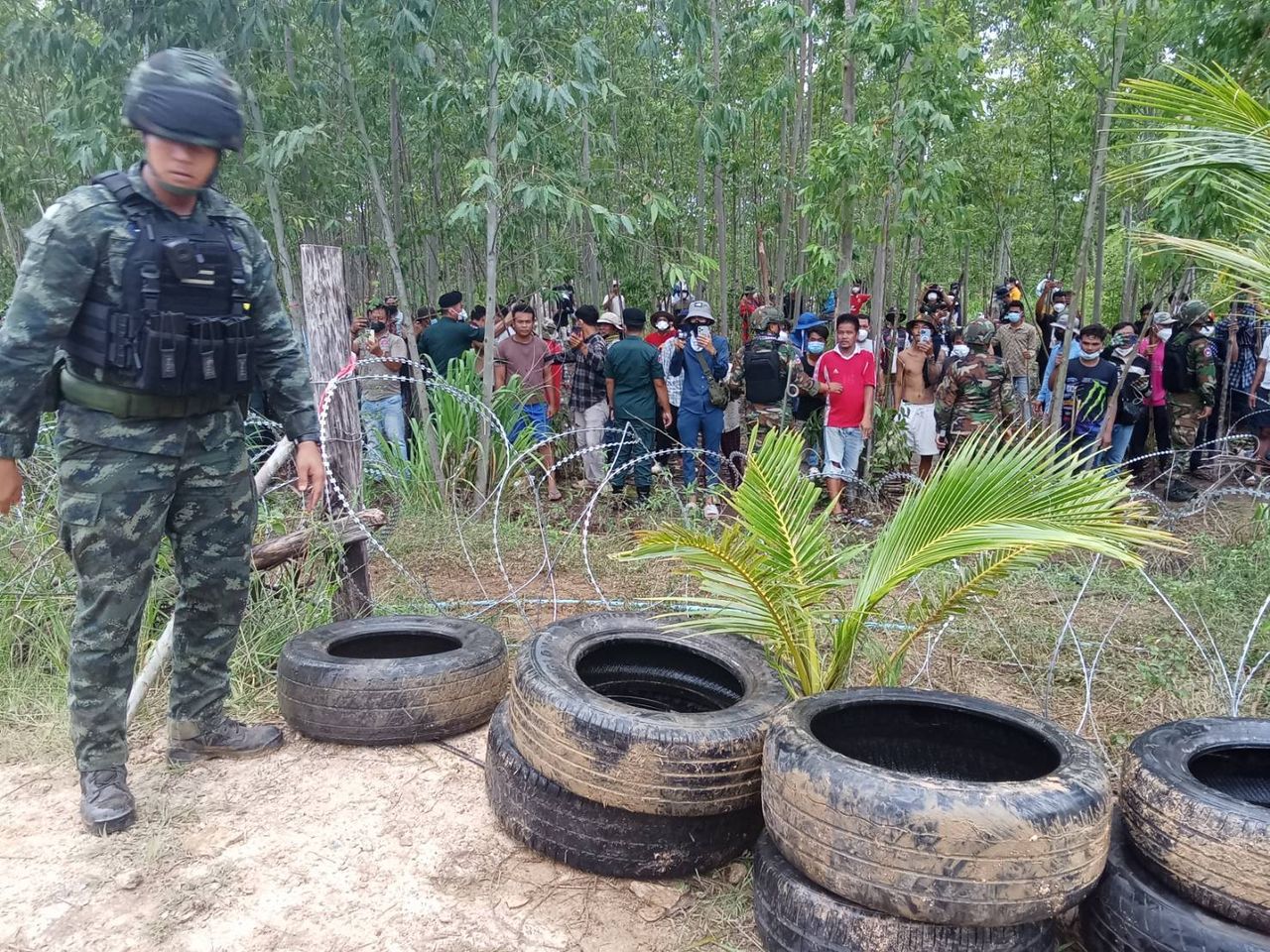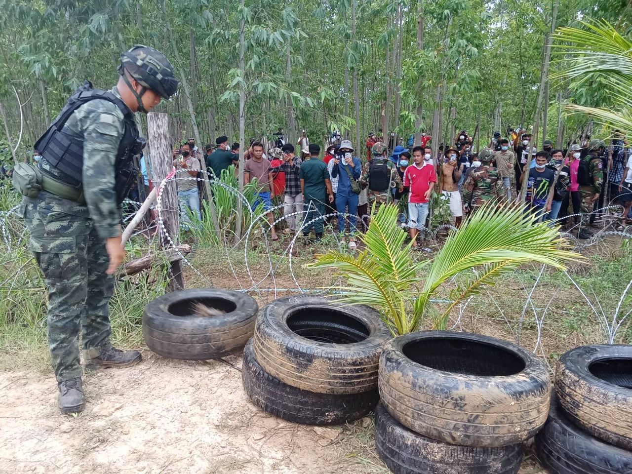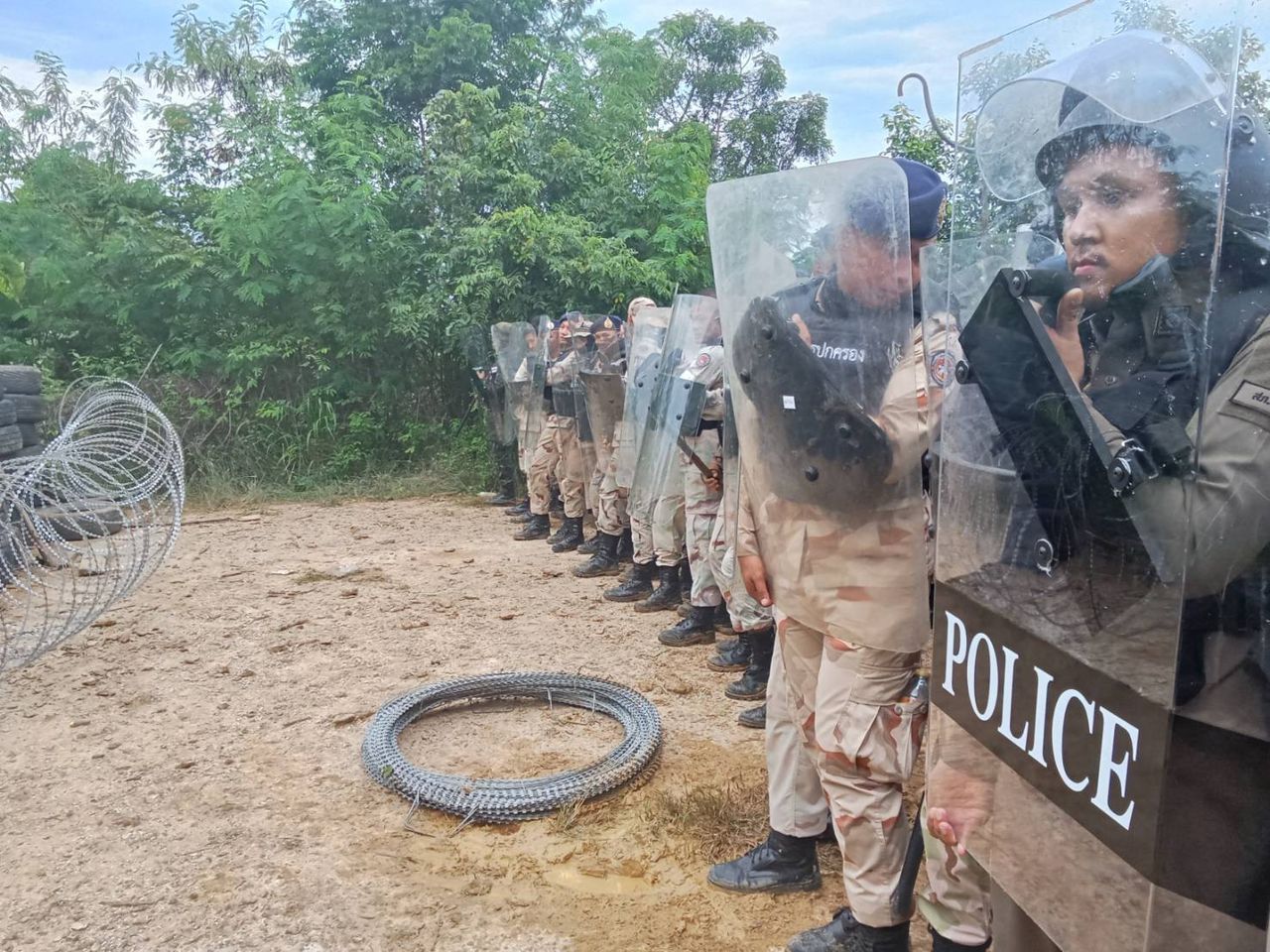 ขณะที่ฝ่ายกัมพูชาเริ่มถอยออกจากพื้นที่ และมีการตะโกนต่อว่าเจ้าหน้าที่ไทยเป็นระยะ รวมทั้งมีการใช้ความรุนแรงโดยการขว้างปาท่อนไม้ ก้อนหิน และยิงหนังสติ๊กมายังเจ้าหน้าที่ฝ่ายไทย จนมีเจ้าหน้าที่ได้รับบาดเจ็บ โดยก่อนหน้านั้นบริเวณริมชายแดนไทย-กัมพูชา มีรายงานการปะทะของมวลชนกัมพูชา ในหลายพื้นที่