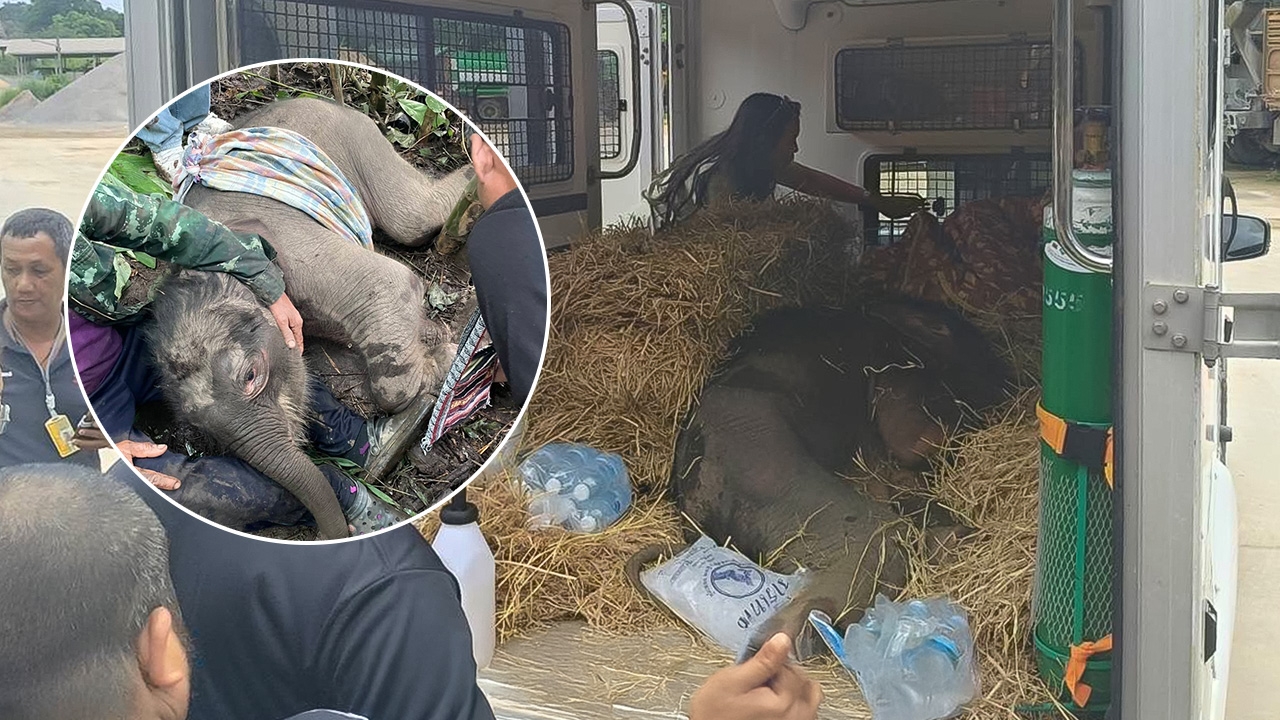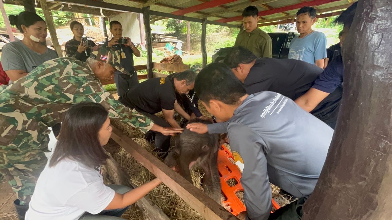 น้องข้าวต้ม เปิดภาพขนย้ายลูกช้างพลัดหลง คาดถึงบึงฉวากฯ จ.สุพรรณบุรี ก่อนค่ำนี้ พบอาการขาหลังบาดเจ็บ เจ้าหน้าที่ป้อนนม น้ำข้าวต้มสุกฟื้นร่างกายเบื้องต้น