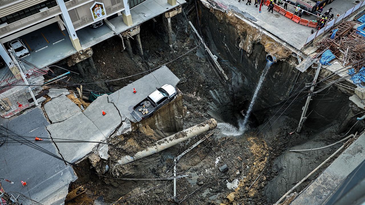 ถนนทรุดบริเวณ ถนนสามเสน วันนี้ 24 ก.ย.68 เมื่อเช้าที่ผ่านมา ส่งผลให้ต้องอพยพประชาชนในพื้นที่ใกล้เคียง และผู้ป่วยในโรงพยาบาลวชิระ ขณะที่ตึกใกล้เคียงหลุมยุบอย่างอาคารของ สถานีตำรวจสามเสน ซึ่งเป็นตึกสร้างใหม่ยังไม่ทันได้เปิดใช้ เผยให้เห็นพื้นดินด้านล่างที่เป็นเสาเข็มหายไปบางส่วน