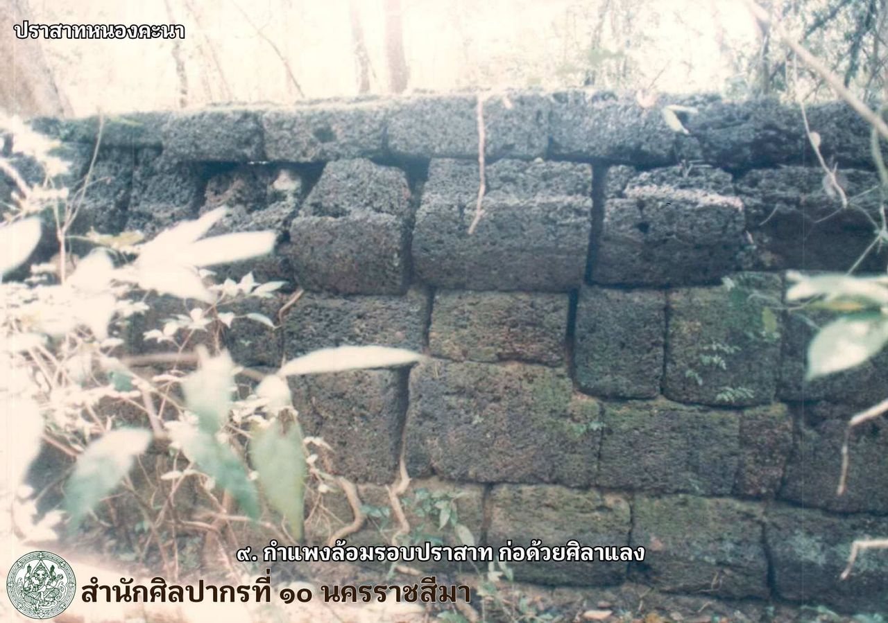 ผลการสำรวจพบว่าเป็นปราสาทที่ก่อสร้างด้วยอิฐจำนวน 3 หลัง หรือมากกว่านั้น หันหน้าหรือมีทางเข้าด้านทิศตะวันออก มีกำแพงก่อด้วยศิลาแลงล้อมรอบ กำแพงขาดหายเป็นช่วงแต่สามารถวัดขนาดได้ว่ามีความยาวด้านละ 39.50 เมตร ปราสาทมีสภาพชำรุดทรุดโทรม ชิ้นส่วนประกอบอาคารหลุดร่วงแตกหัก เช่น เสาประดับกรอบประตูแปดเหลี่ยม ทับหลังสลักภาพช้างเอราวัณ 3 เศียร ทับหลังสลักภาพบุคคลนั่งชันเข่า ศิวลึงค์ที่มีลักษณะติดกับฐานปรากฏส่วนวิษณุภาคที่มีแปดเหลี่ยม และส่วนรุทรภาคที่แตกหัก จำนวน 3 ชิ้น พบบริเวณกลุ่มปราสาทประธานและห่างออกไปทางทิศตะวันตก ใกล้กับตัวปราสาทมีหนองน้ำชื่อหนองคะนา และหนองน้ำขนาดเล็กอีกแห่งหนึ่ง