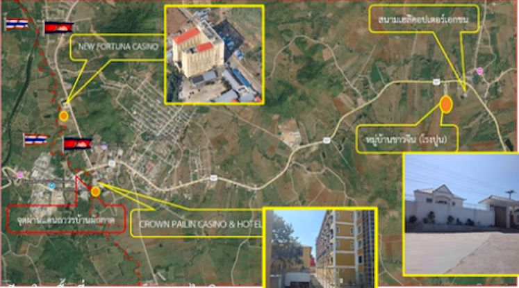 2. CROWN PAILIN CASINO & HOTEL ตั้งอยู่ติดกับแนวเขตแดนกัมพูชา-ไทย มีพนักงานเป็นชาวจีนและสัญชาติอื่นอาศัยอยู่ ประมาณ 500-600 คน