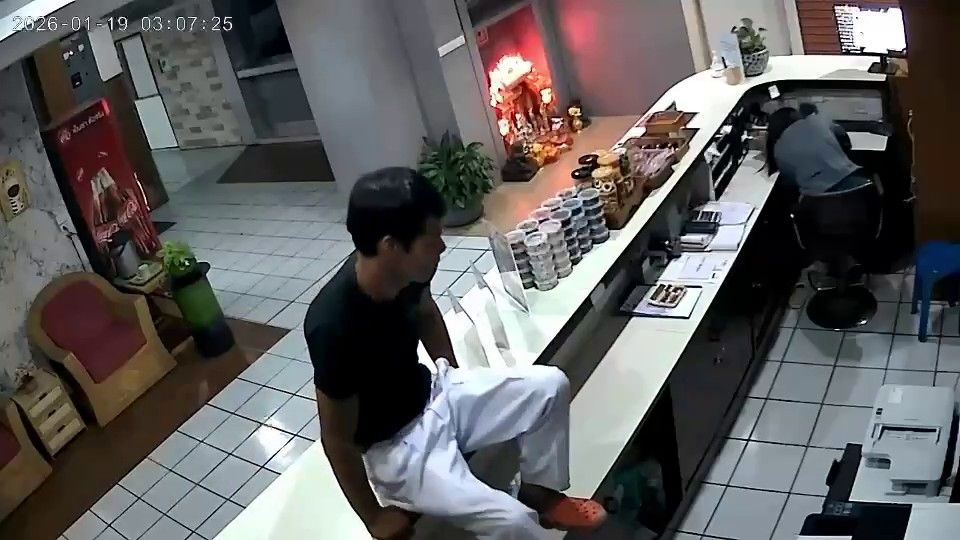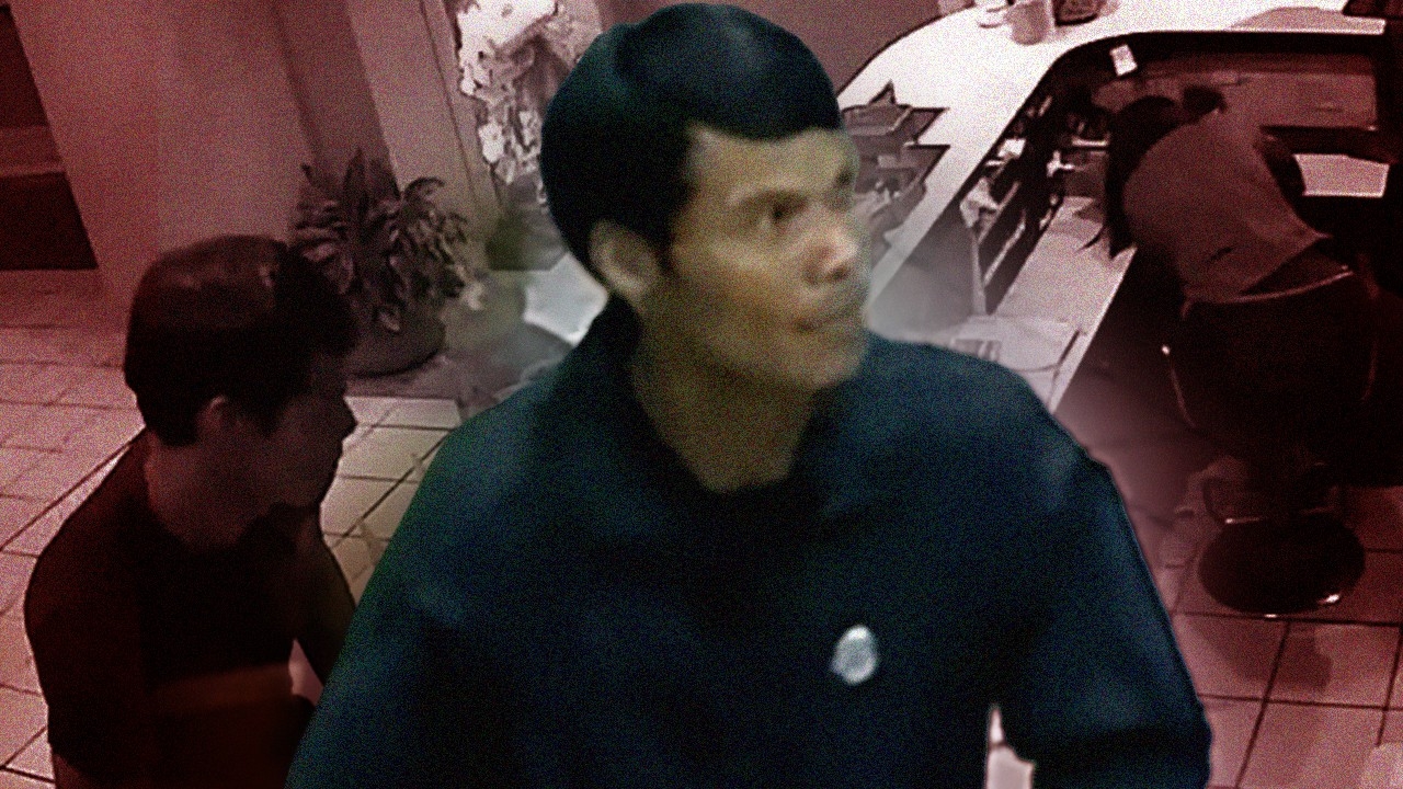 - ต่อมา ผู้ตายเริ่มนอนฟุบลงกับโต๊ะเคาน์เตอร์ คนร้ายจึงย้อนกลับเข้ามาสังเกตการณ์อีกครั้ง
