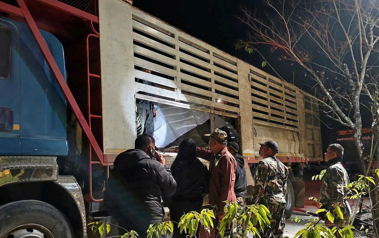 เวลา 21.55 น. : สามารถนำช้างขึ้นรถบรรทุกได้เรียบร้อย