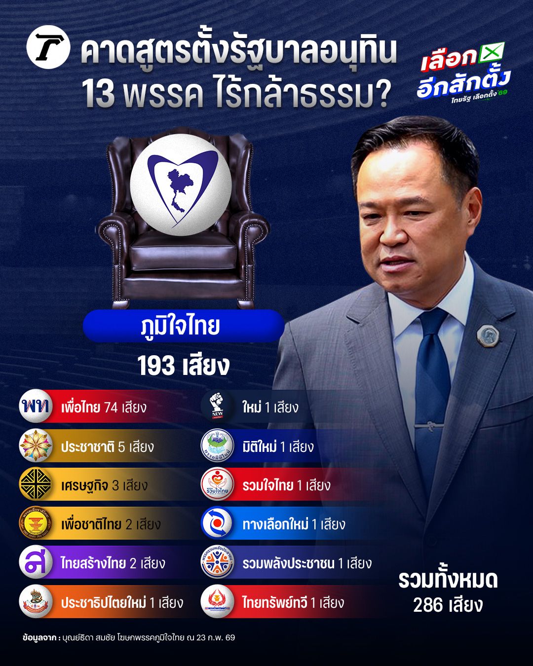 ลือดีลรัฐบาลไร้ “กล้าธรรม” แบ่งเค้กคุมกระทรวงเกรดเอ “นักวิชาการ” ประเมินภูมิใจไทย ขาด ธรรมนัส เสถียรภาพระยะยาวเสี่ยงถูกตลบหลังสูง ฝ่ายค้านยิ่งเข้มแข็ง